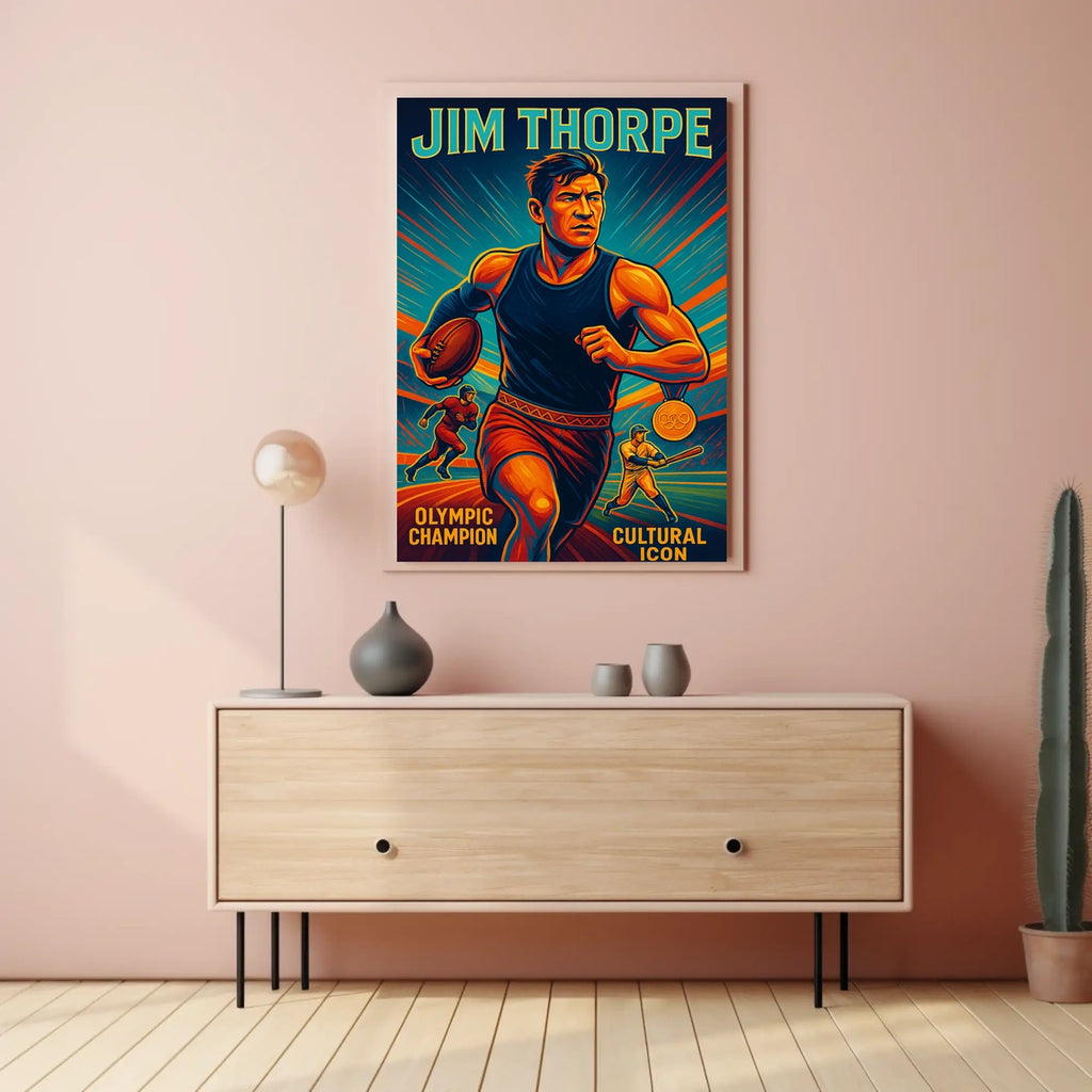 Intro: Experience the power and grace of one of history's greatest athletes with the Jim Thorpe: A Legacy of Excellence poster. This dynamic artwork captures Thorpe's Olympic triumphs and enduring cultural impact, making it a compelling centerpiece for any room or collection.