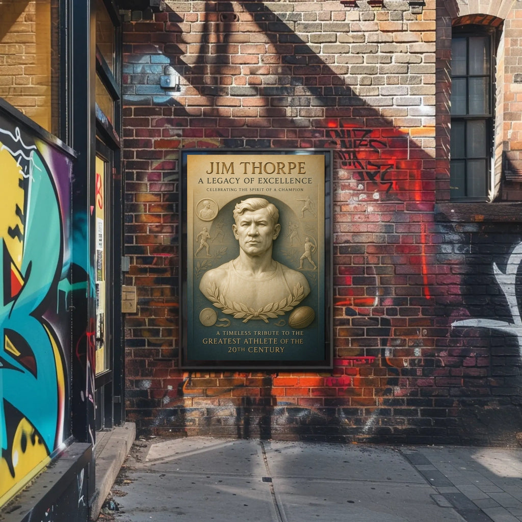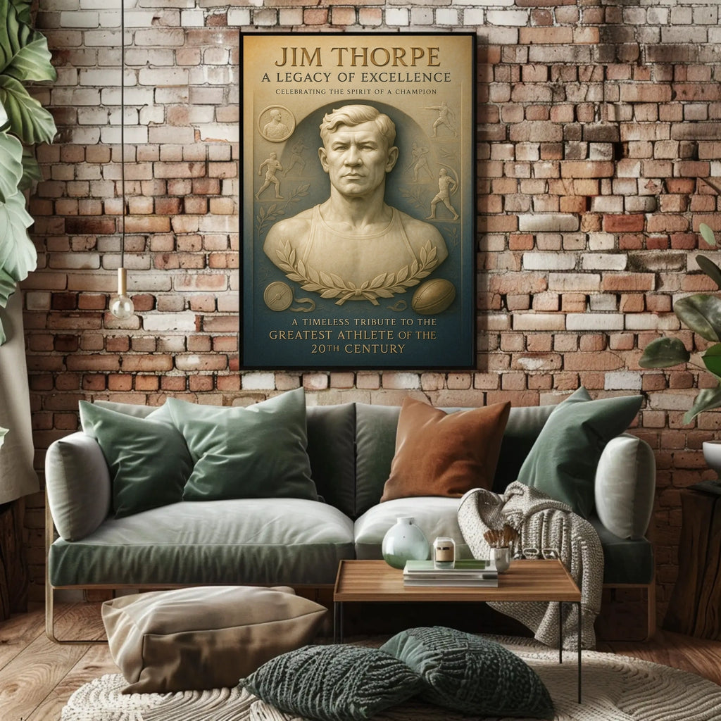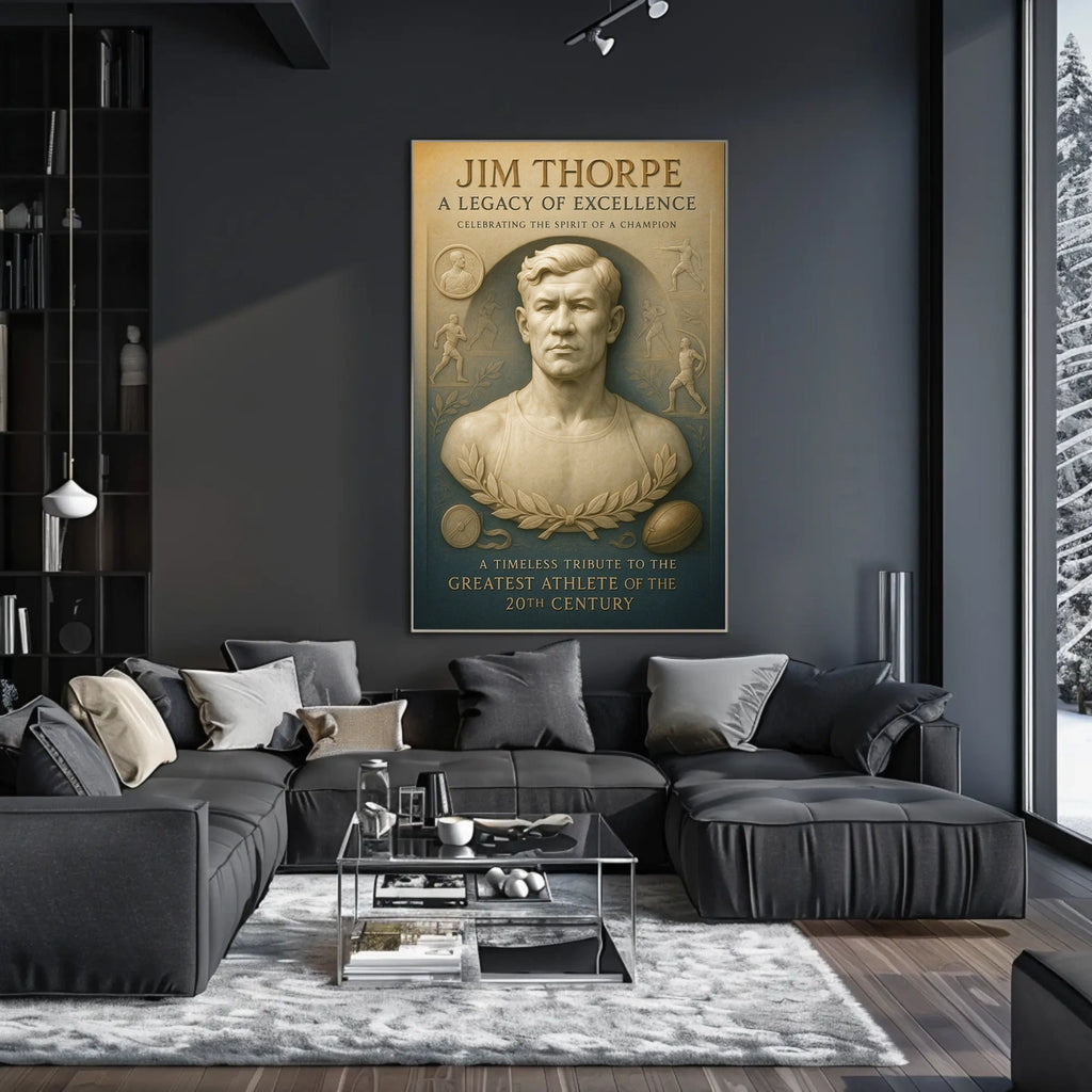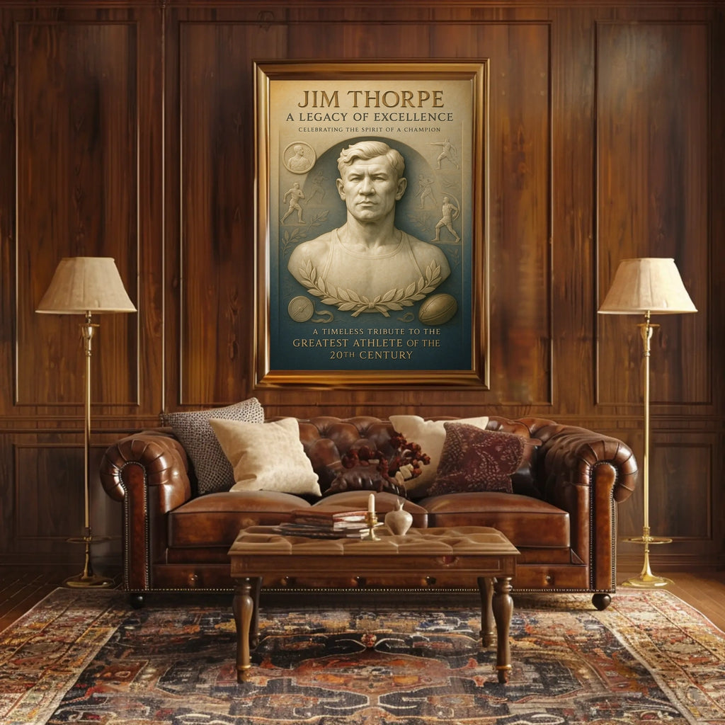 Celebrate the legendary Jim Thorpe with this stunning poster, designed to inspire greatness in any space. It captures the essence of his remarkable athletic achievements and enduring legacy for sports fans and history buffs alike.