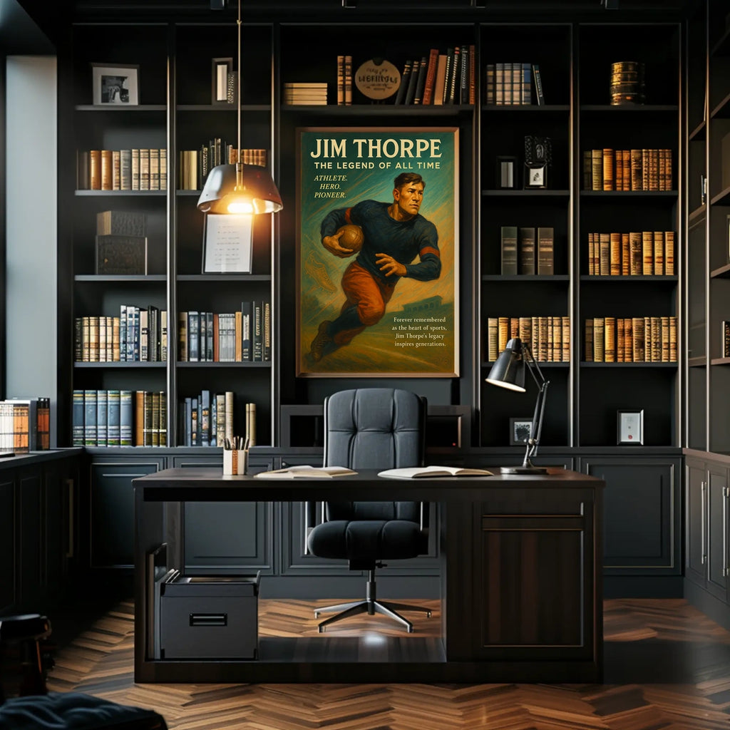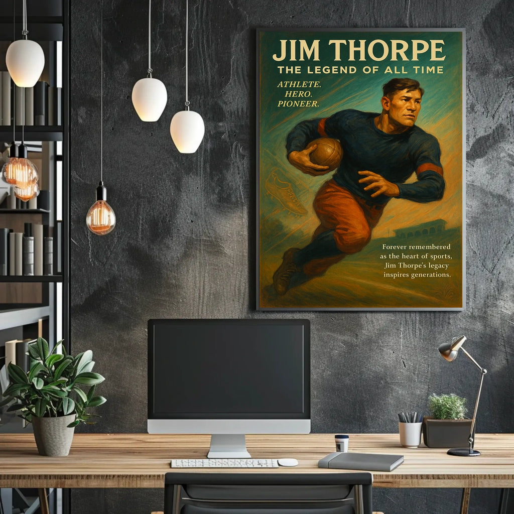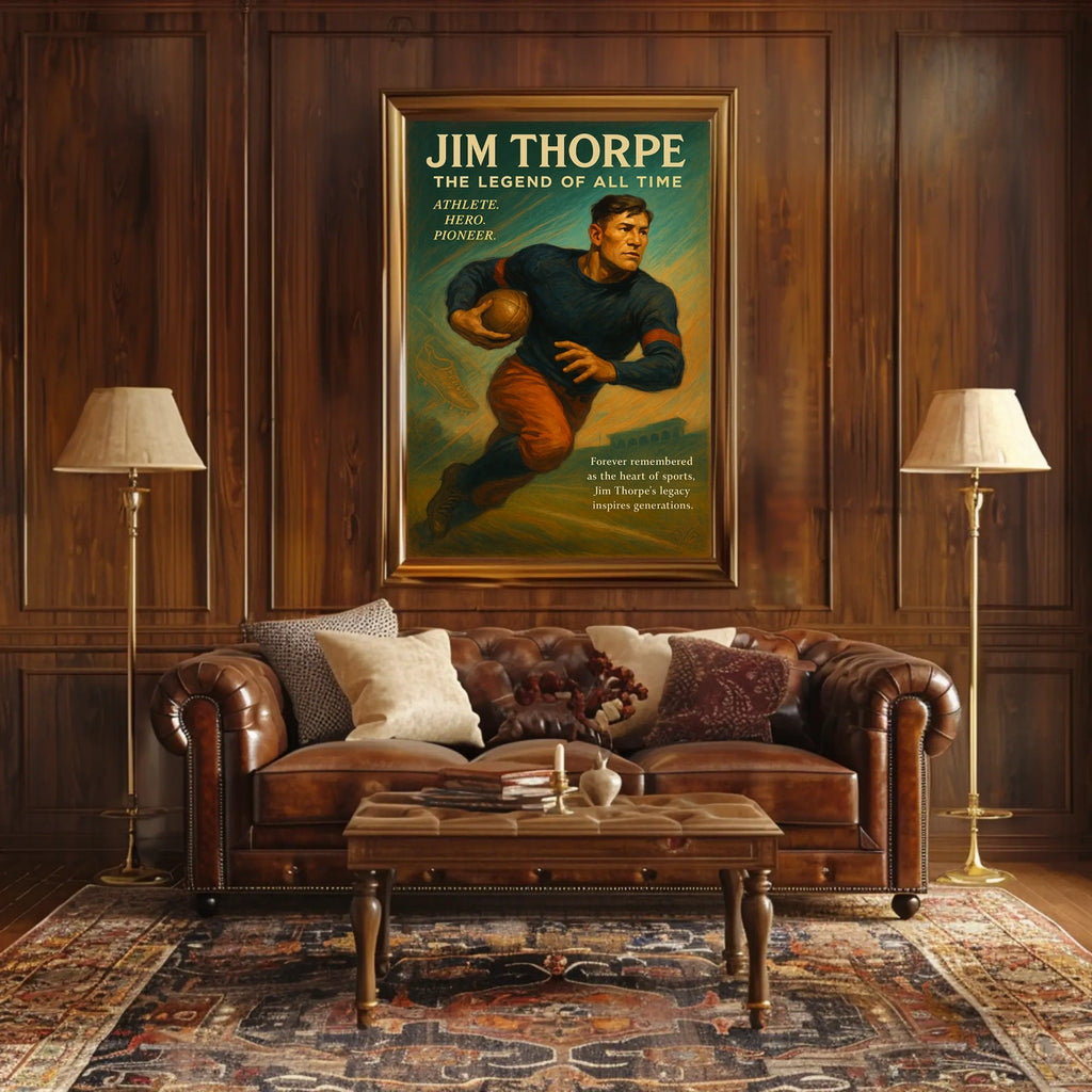 Celebrate the enduring legacy of Jim Thorpe with this captivating poster—an homage to one of history's greatest athletes. Perfect for sports fans, history buffs, and bold decor lovers, it brings Thorpe's pioneering spirit and record-breaking feats into your space, inspiring daily ambition and admiration.