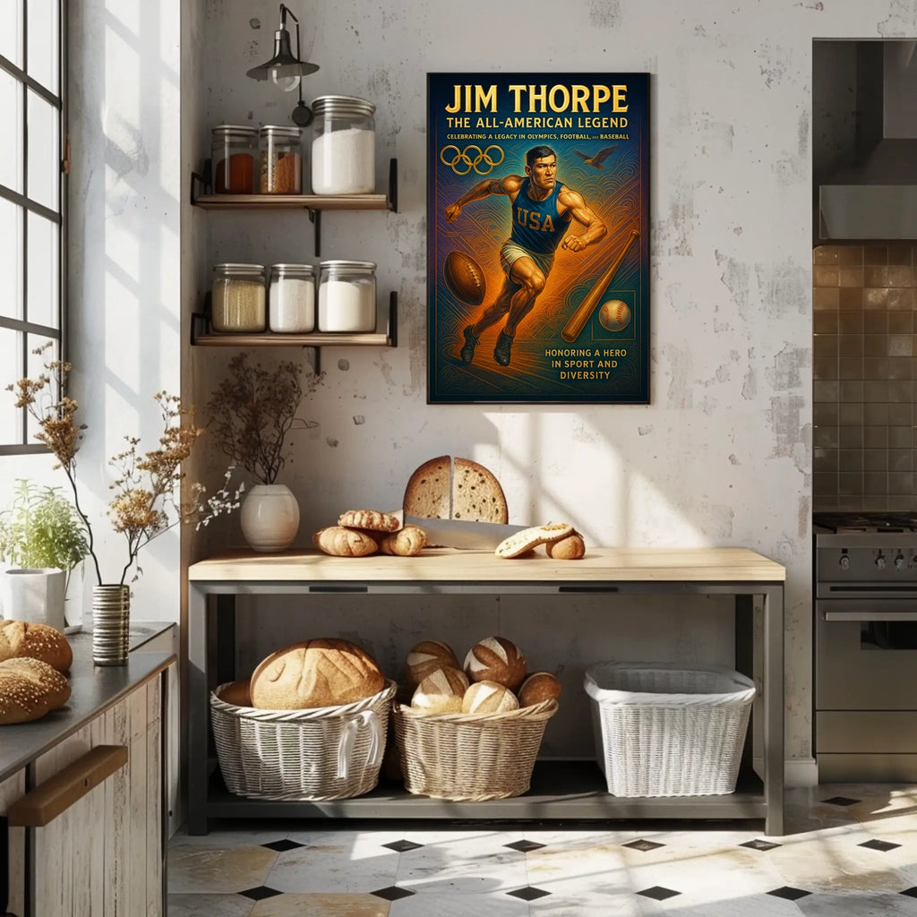 Own a piece of sports history and keep the legacy alive in your space. This poster honors Jim Thorpe's enduring spirit and the values of hard work, versatility, and inclusion. Shop now to elevate your wall with inspirational art and join the celebration of a true sports legend.