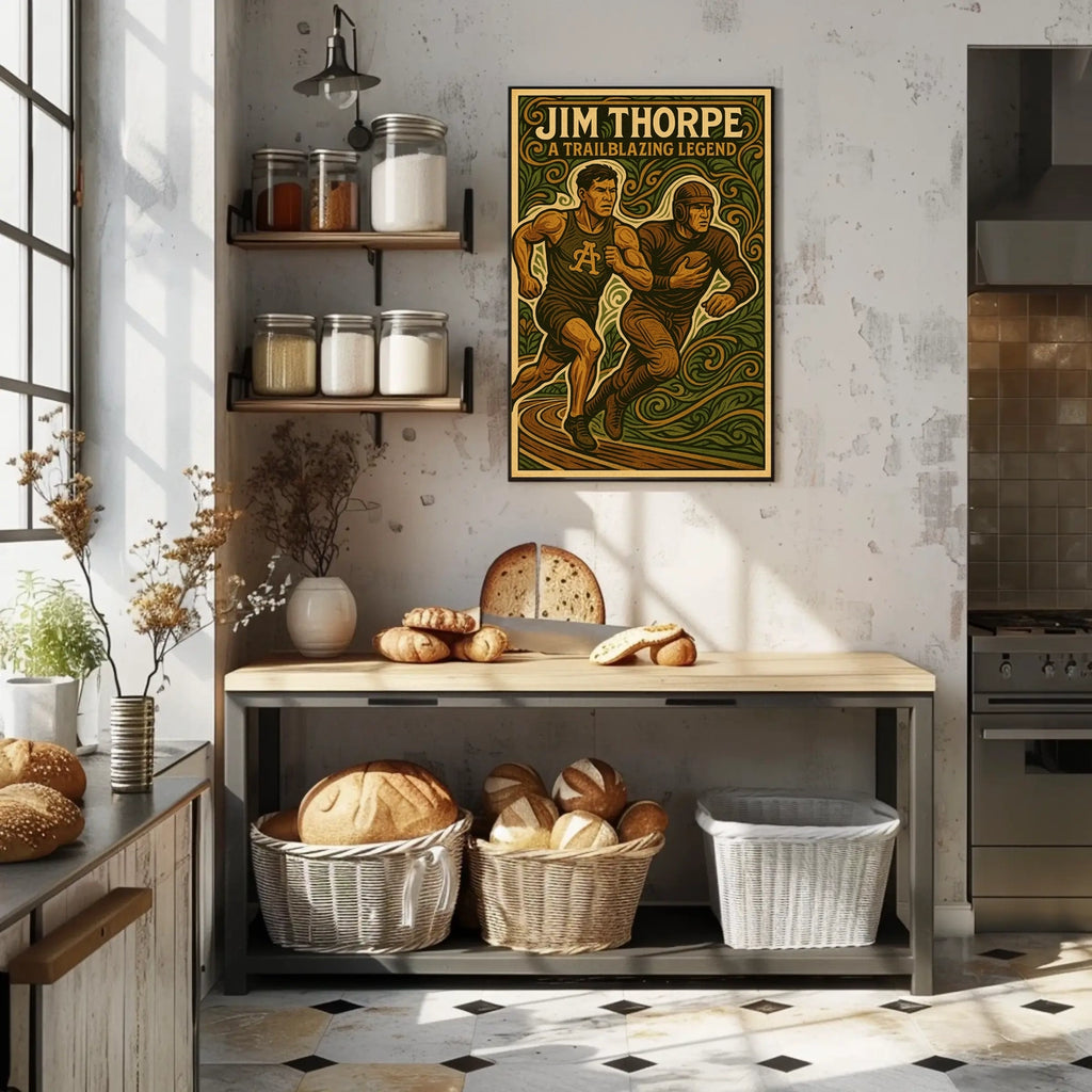 Intro: Celebrate a trailblazing athlete with the Jim Thorpe: A Trailblazing Legend Poster. This striking artwork captures Thorpe's dynamic presence and storied achievements, making it a bold centerpiece for fans of athletics, history, and inspirational art. Perfect for living rooms, study spaces, or classrooms, it brings heritage and energy into any environment.