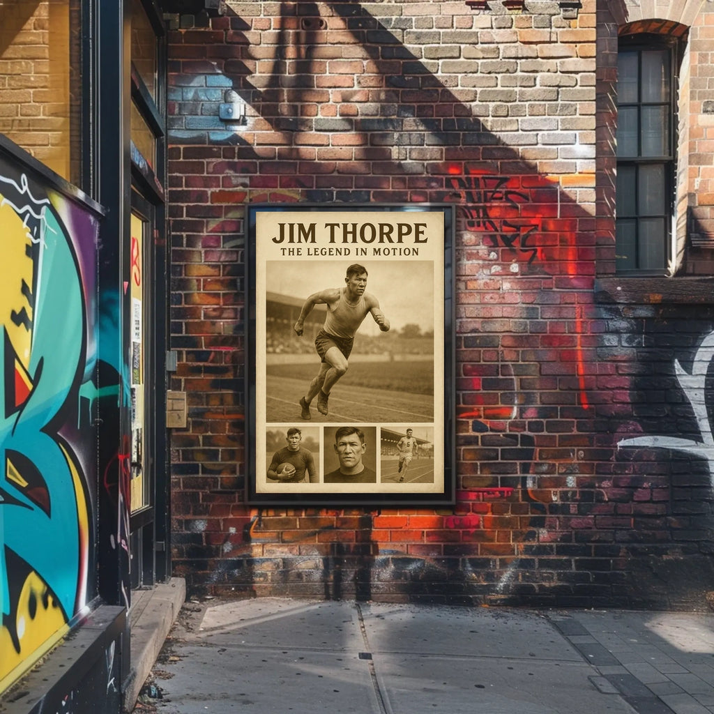 This poster is a timeless tribute that elevates any room, fuels motivation, and connects your space to Jim Thorpe's enduring legend. Ready to celebrate a legend in motion? Shop now to add this striking piece to your collection.