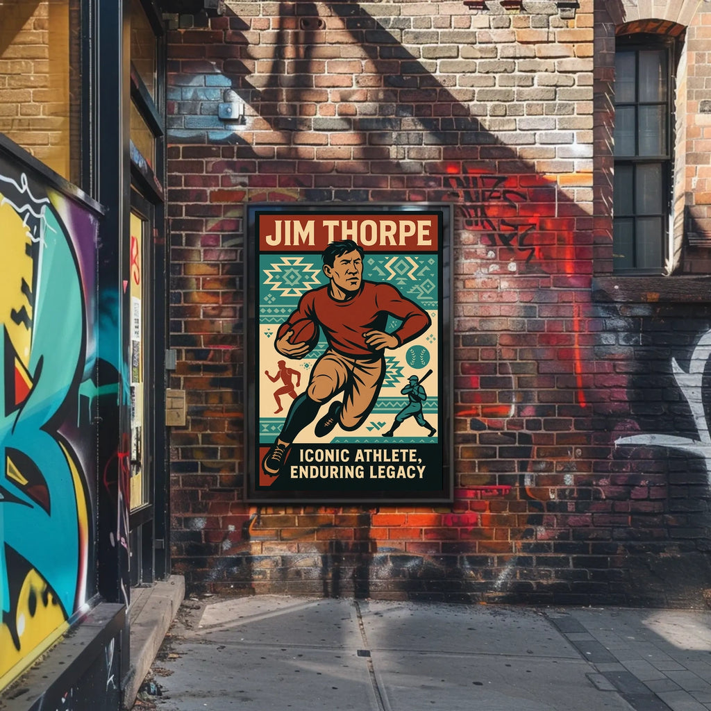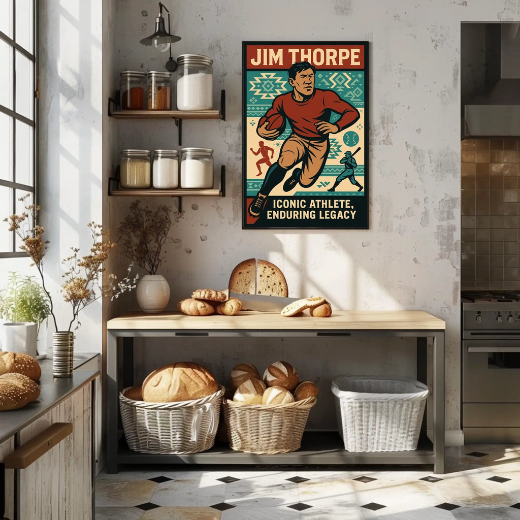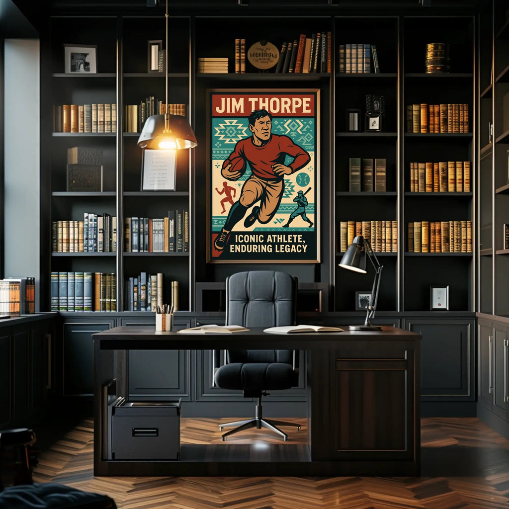 Add this striking poster to your collection and celebrate a true sports legend. Its vibrant tribute to Jim Thorpe blends history with motivation, making it a compelling centerpiece for any wall. Shop now to own a piece of athletic heritage.