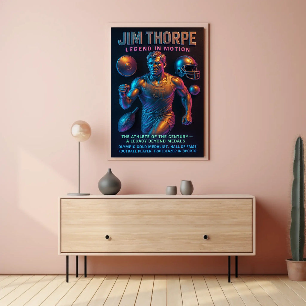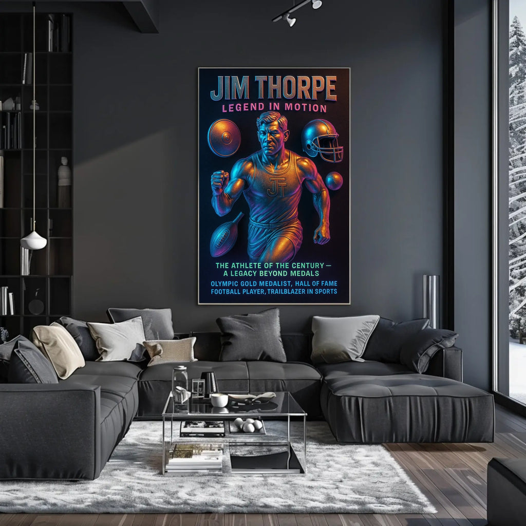 Iconic presence: captures Thorpe's athletic energy, turning any wall into a fearless tribute that motivates daily.