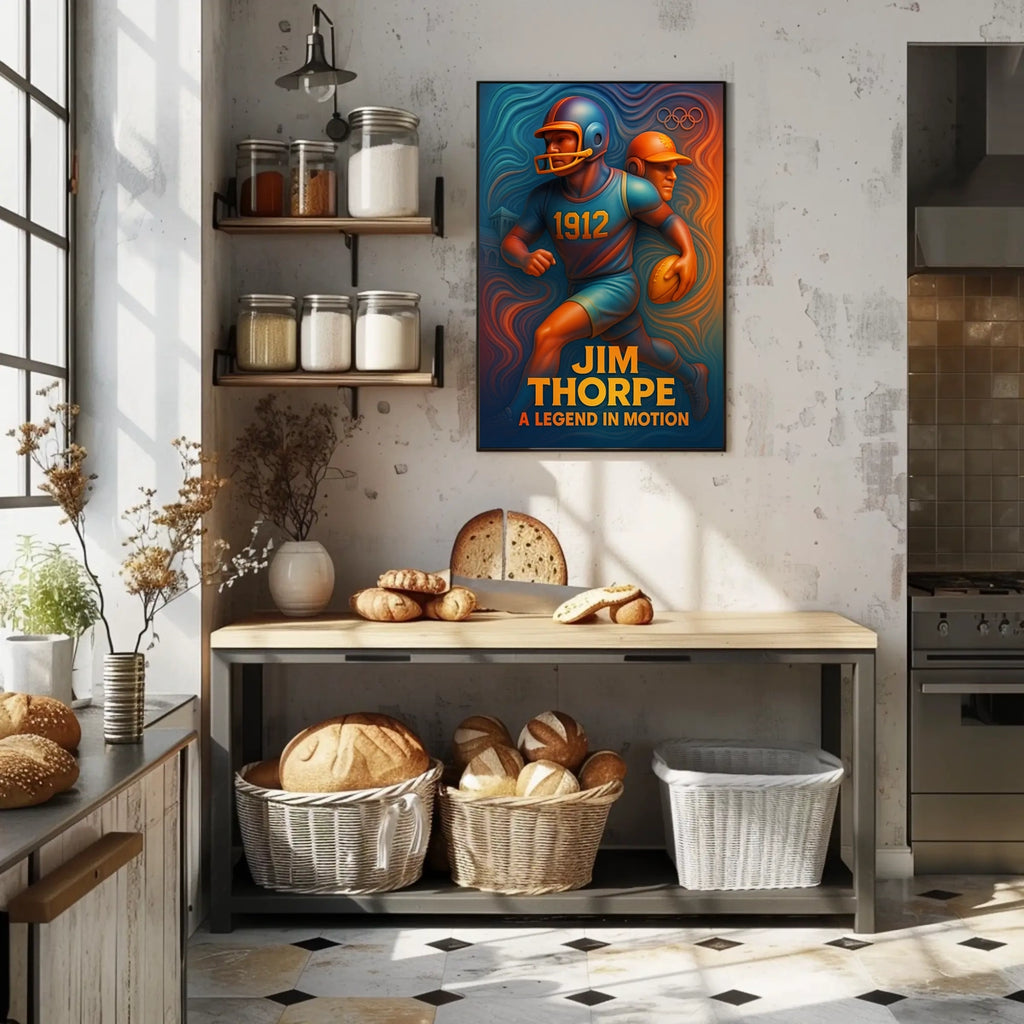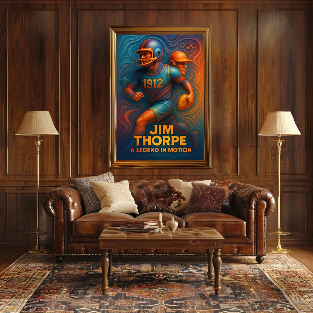 Celebrate the enduring legacy of one of sport's greatest icons with this Jim Thorpe: A Legend in Motion poster. Combining historical reverence with bold, modern design, it highlights Thorpe's trailblazing athletic feats and his pivotal role in shaping modern athletics. Perfect for living rooms, gyms, or study spaces, it adds energy and inspiration to any wall.