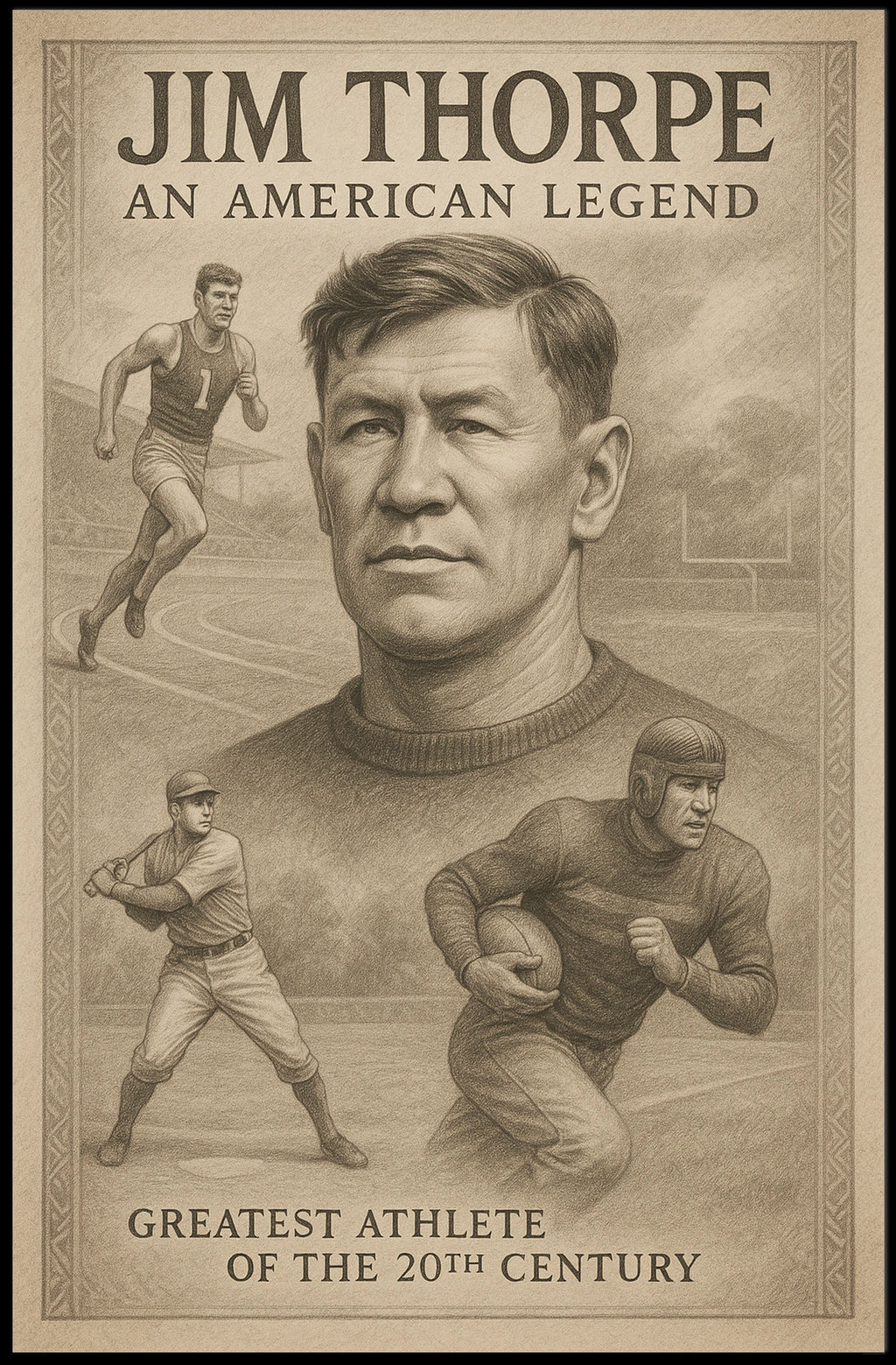 Intro: Celebrate the legend of Jim Thorpe with this striking poster that honors a pioneering American athlete. This art piece blends history and inspiration, turning Thorpe's multi-sport genius into a bold visual statement for any room, from living spaces to classrooms. Its timeless design pairs with modern interiors while sparking conversations about courage, versatility, and American sports history.