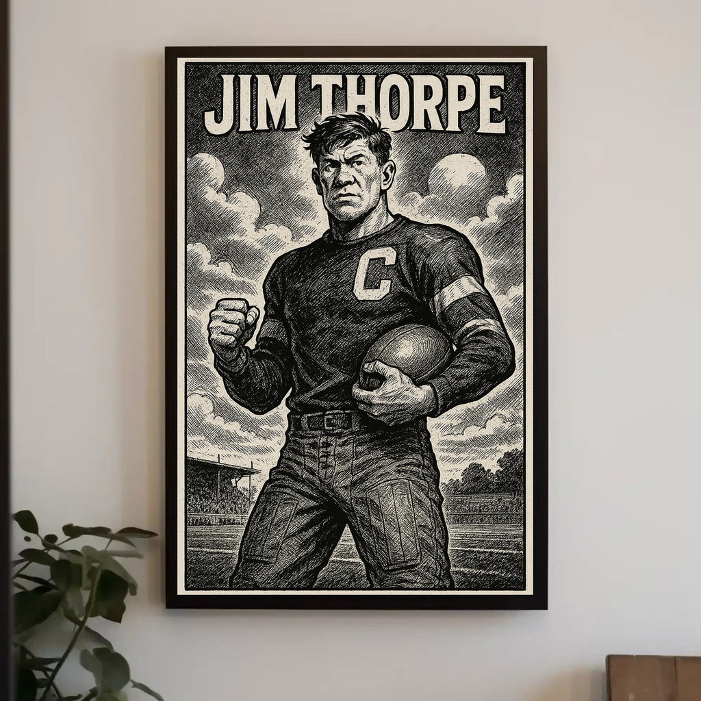 - Printed with precision and made to inspire, this artwork is more than decoration—it’s a conversation piece that connects history, culture, and style. Bring Jim Thorpe Legendary Athlete into your home, classroom, or office today and let your walls tell a powerful story.