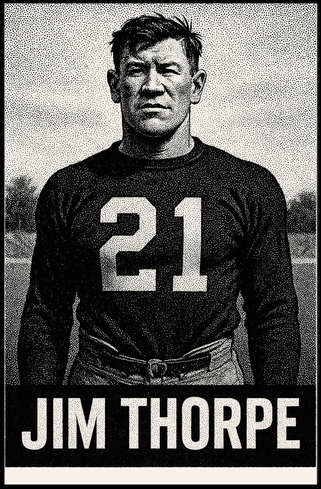 - Detailed design highlighting Jim Thorpe's extraordinary versatility as an athlete across multiple sports