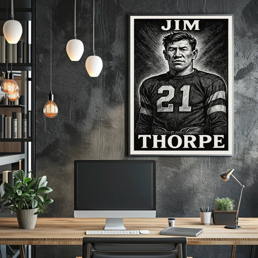 - Printed with precision and made to inspire, this artwork is more than decoration—it’s a conversation piece that connects history, culture, and style. Bring Jim Thorpe Legendary Athlete Poster into your home, classroom, or office today and let your walls tell a powerful story.