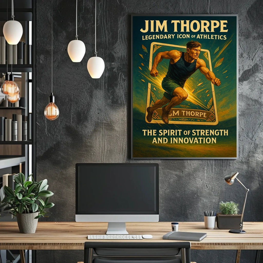 Bring home this Jim Thorpe Legendary Athlete Poster and let a sports icon inspire your daily ambitions. Perfect for offices, living rooms, or gyms, this poster adds historic depth and motivational energy to any wall. Shop now and celebrate a fearless sports icon.