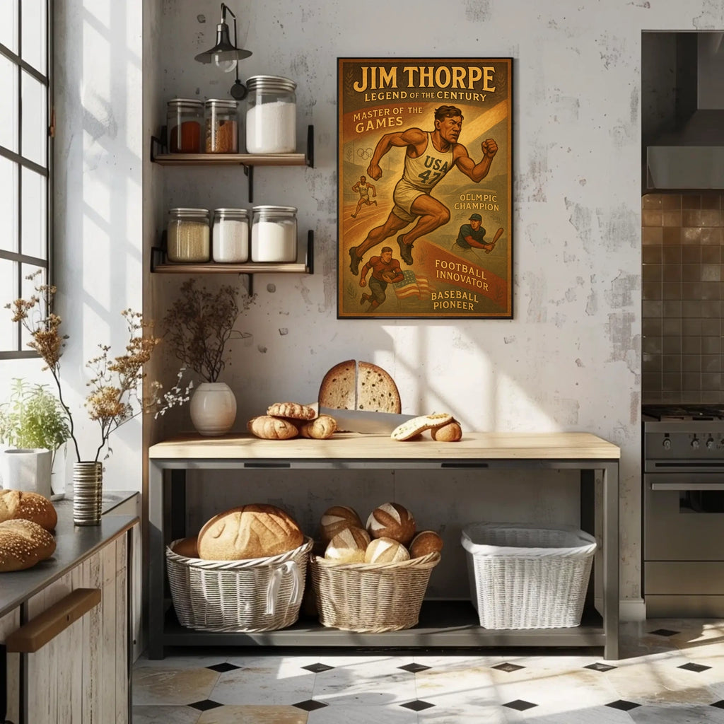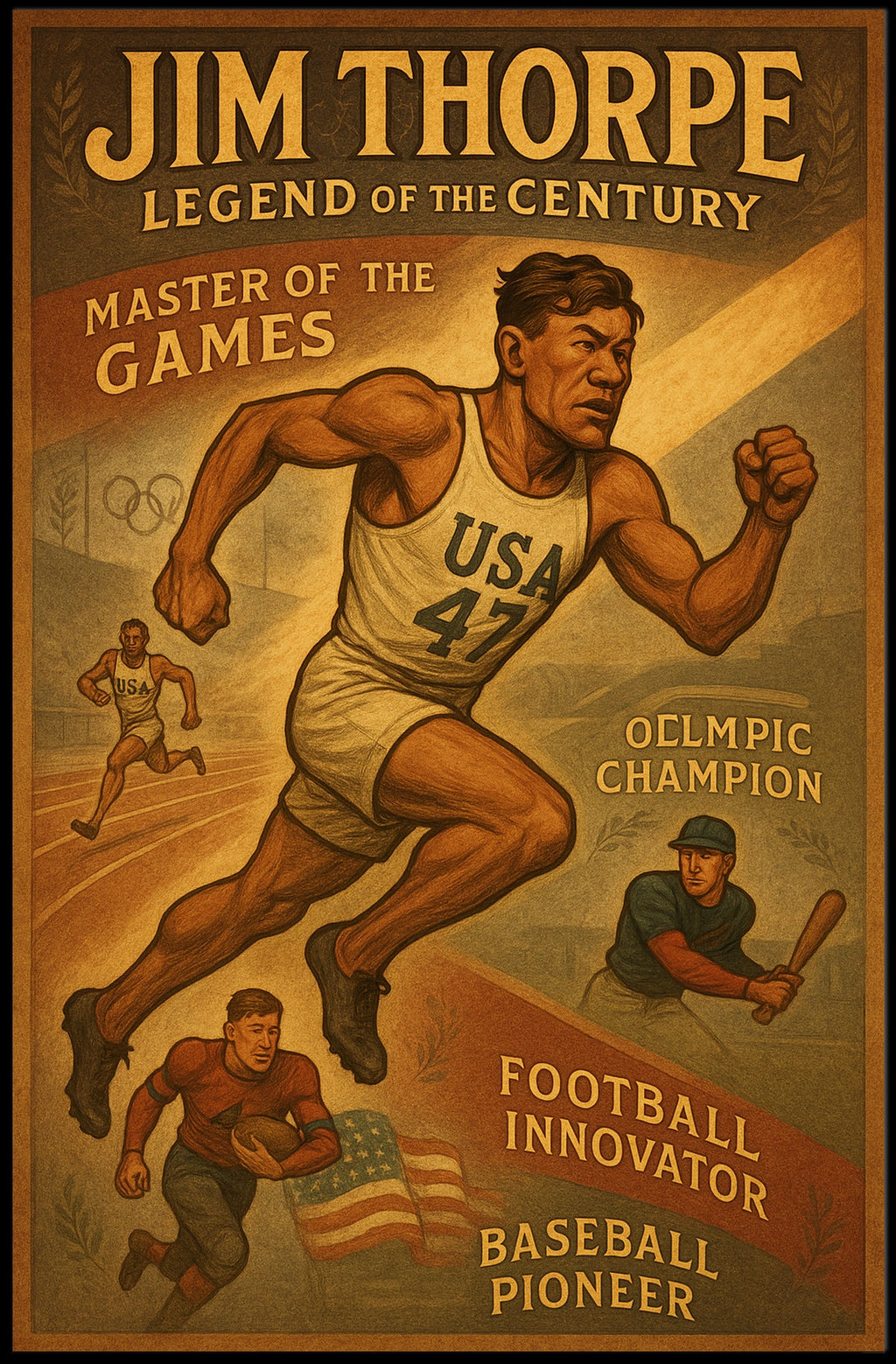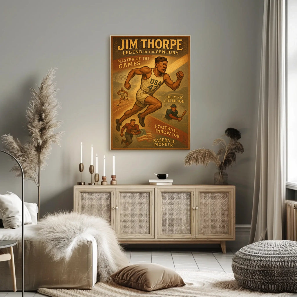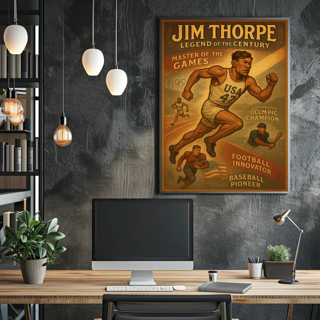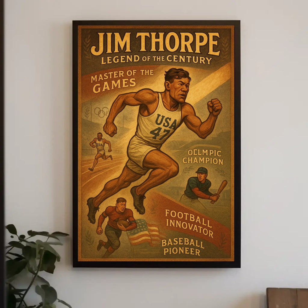 Celebrate the unparalleled legacy of Jim Thorpe with this vintage-style poster that blends athletic history with bold, eye-catching art. Perfect for sports fans, classrooms, or living spaces, it honors a true legend—Olympic champion, football innovator, and baseball pioneer. Printed on premium archival paper for enduring color and easy framing.