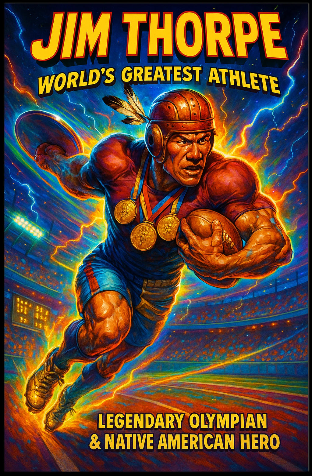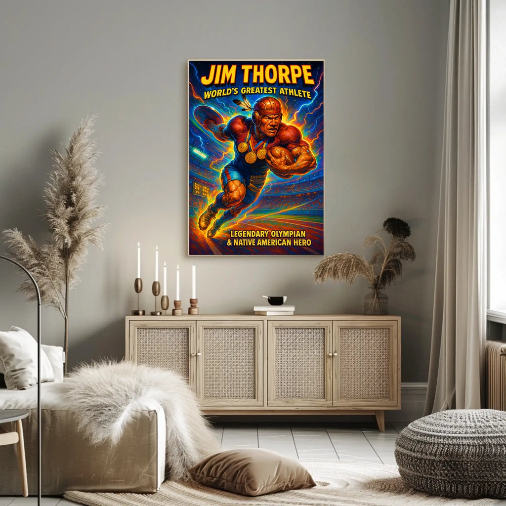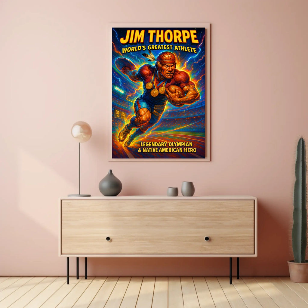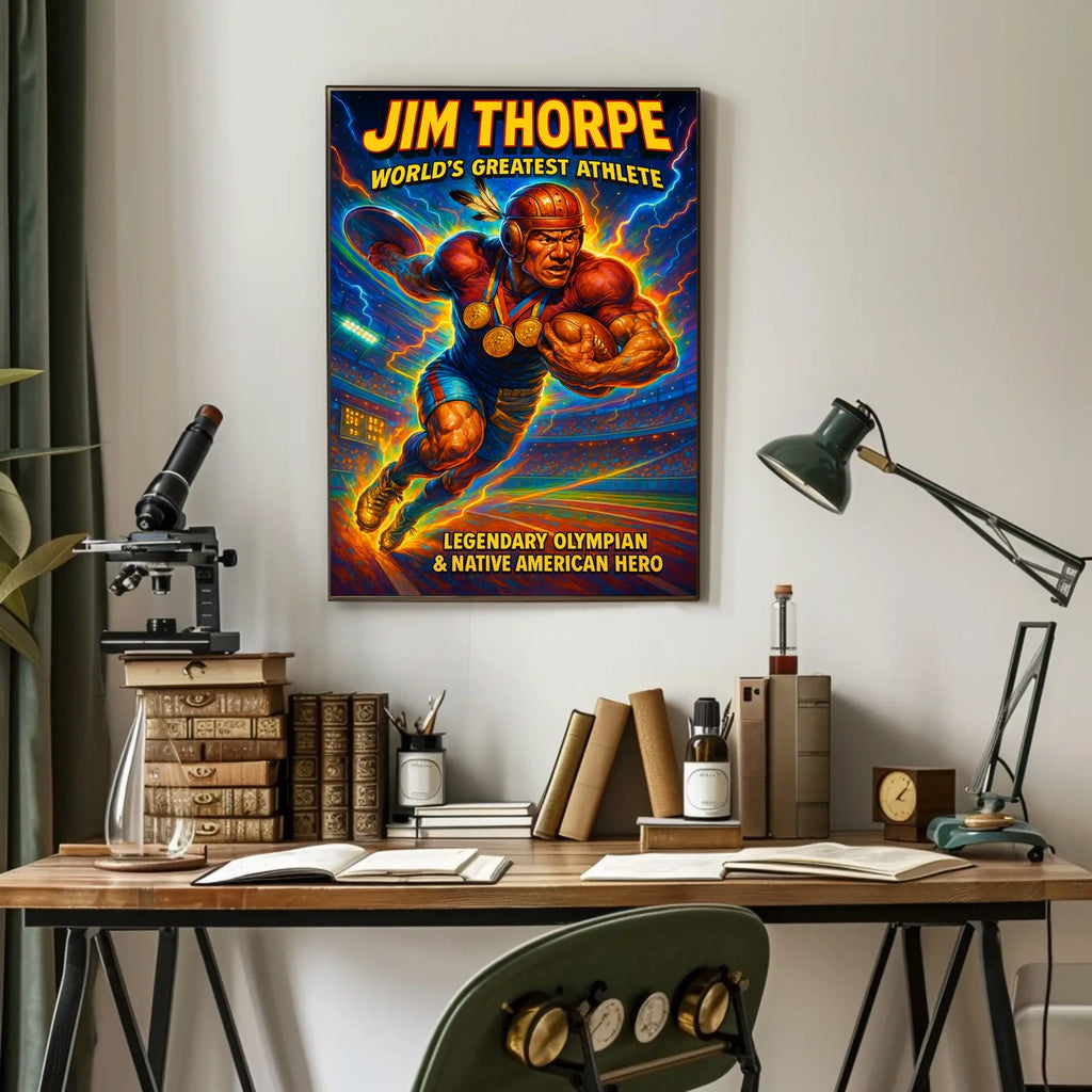 Iconic portrayal of Jim Thorpe — a bold tribute to a legendary Olympian that sparks daily motivation and conversation.