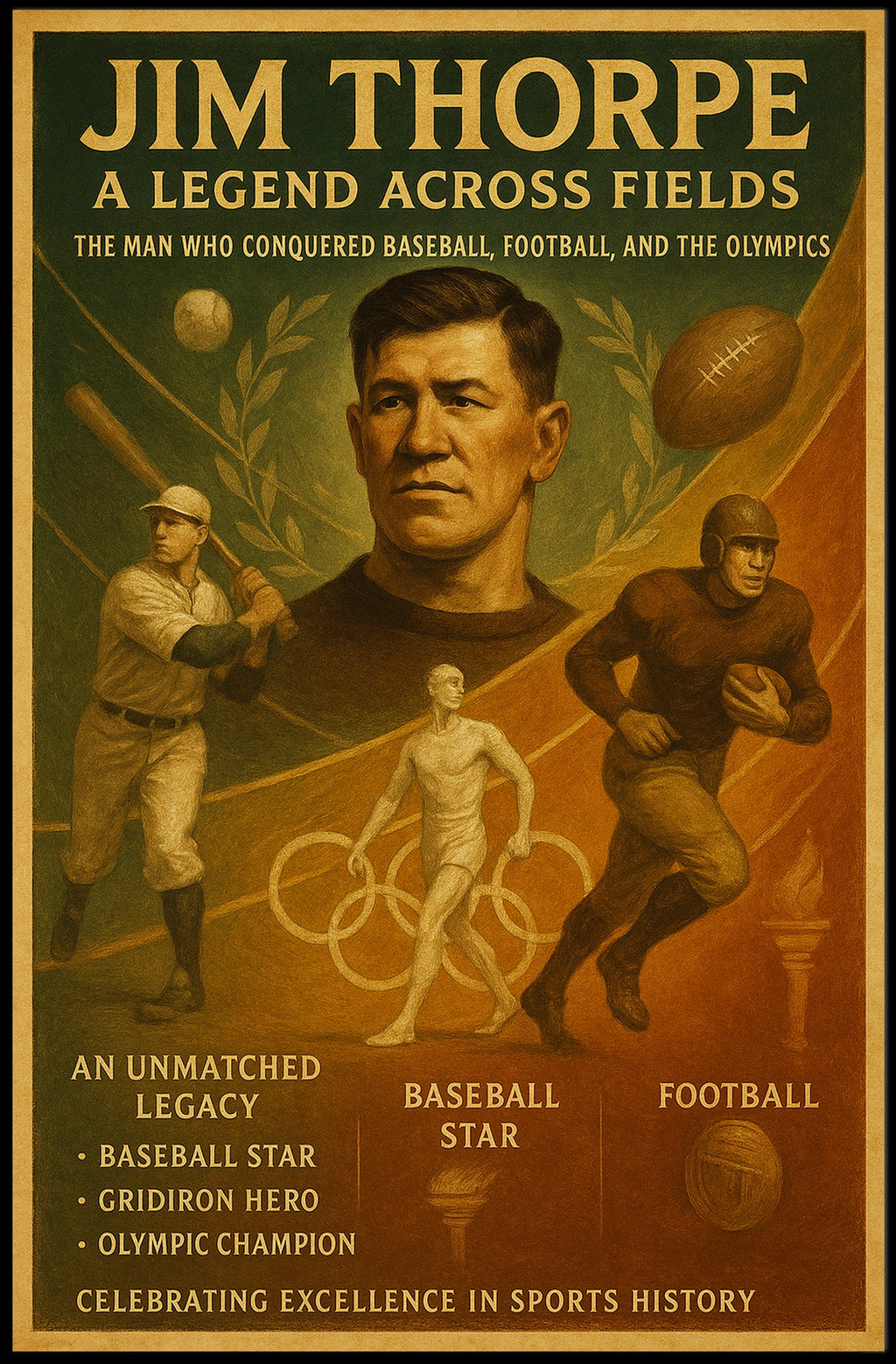 Timeless appeal for sports history fans highlighting a multi-discipline champion who reshaped athletic horizons.