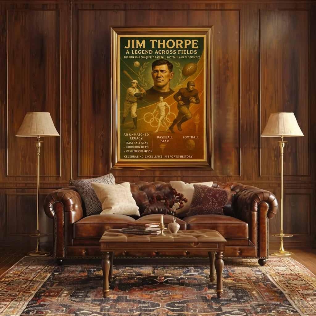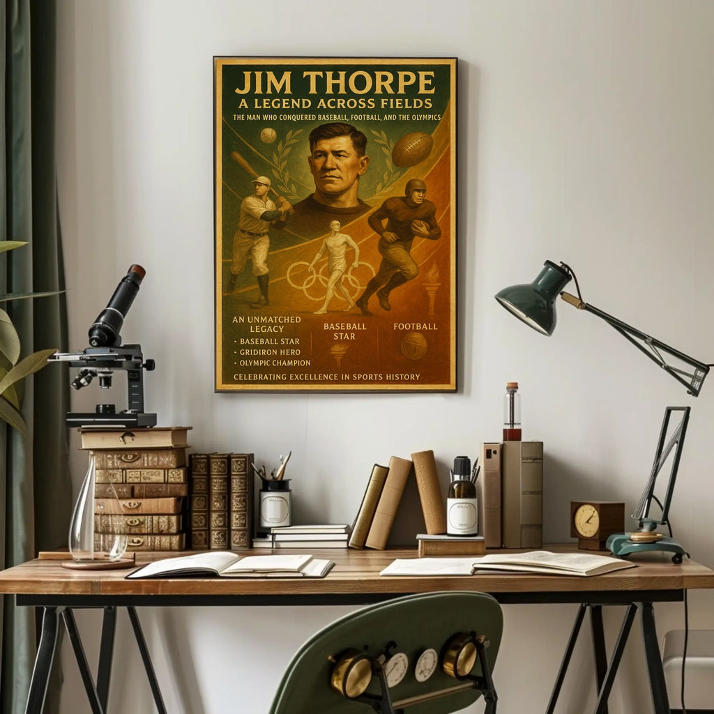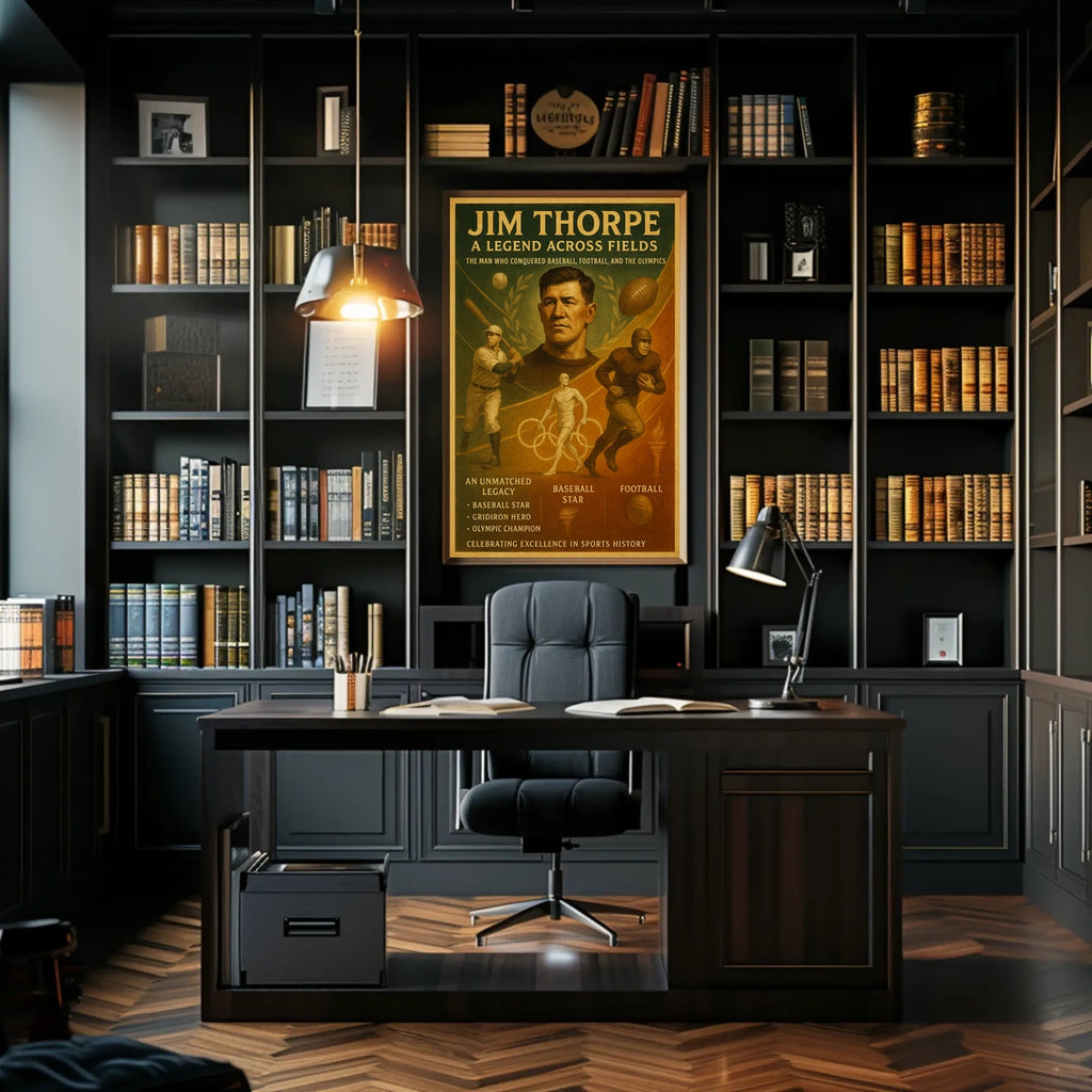 Bring home a piece of sports legend with this Jim Thorpe poster and celebrate a trailblazer whose Olympic champion legacy continues to inspire. Perfect for offices, classrooms, or living spaces, it's a compelling reminder of dedication and versatility. Add it to your collection today—shop now and celebrate greatness.