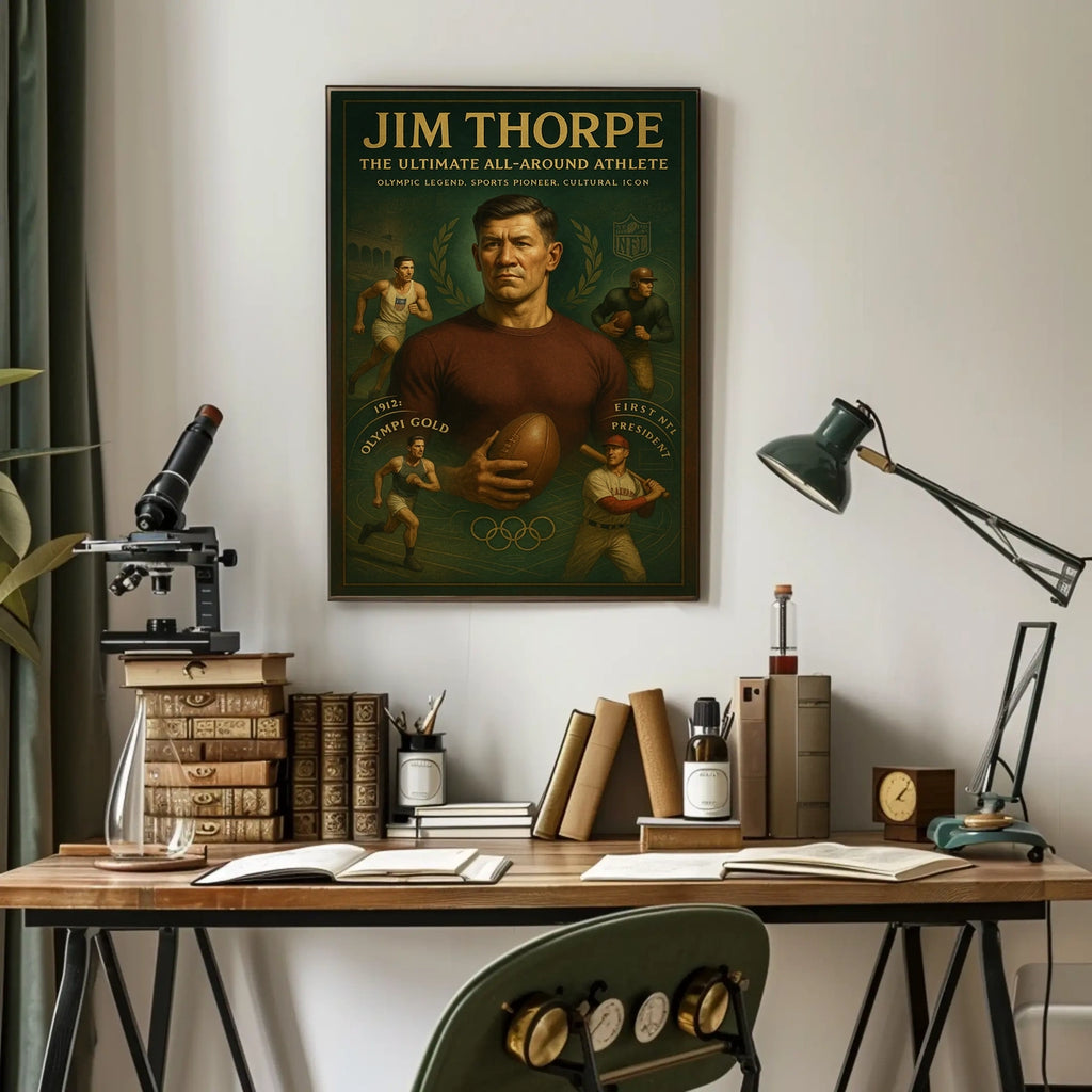 Celebrate a timeless icon with this Jim Thorpe Legendary Athlete Tribute Jim Thorpe Poster, a clean, bold tribute to a barrier-breaking era in sports. Designed to inspire history buffs and sports fans alike, this piece captures Thorpe's indomitable spirit and trailblazing achievements, turning a wall into a source of motivation and conversation.