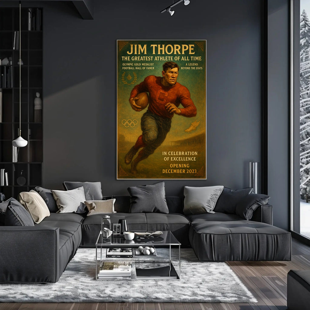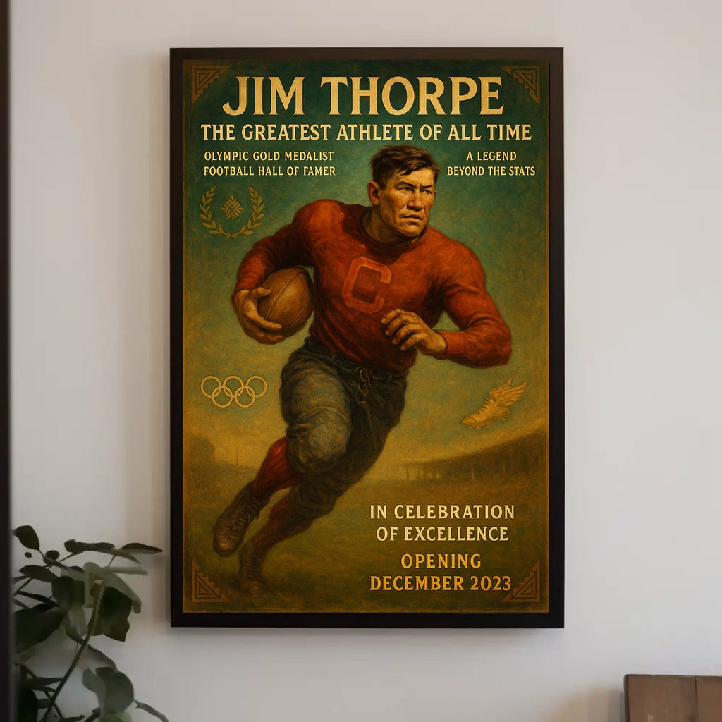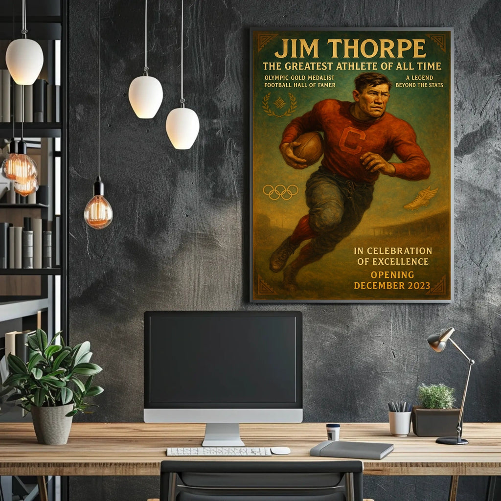 Own a piece of history today. This Jim Thorpe poster celebrates perseverance and athletic greatness, making it a centerpiece for fans and collectors. Add to cart now and let this timeless tribute inspire your space every day.