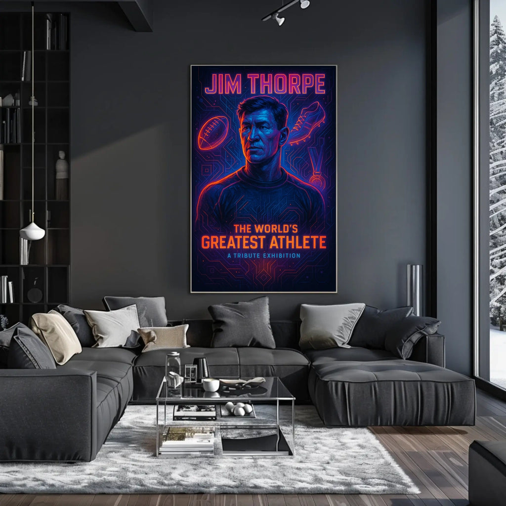 Dynamic portrait that captures Thorpe's speed and versatility — a bold focal point that inspires athletic aspiration and conversation in any room.