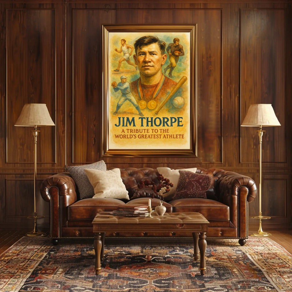 Intro: Jim Thorpe stands as a legendary athlete and iconic sports figure. This poster invites you to celebrate his awe-inspiring versatility and unmatched athletic achievement, bringing energy, inspiration, and sports history lore into any room. It's a bold focal point that elevates your space with purpose.