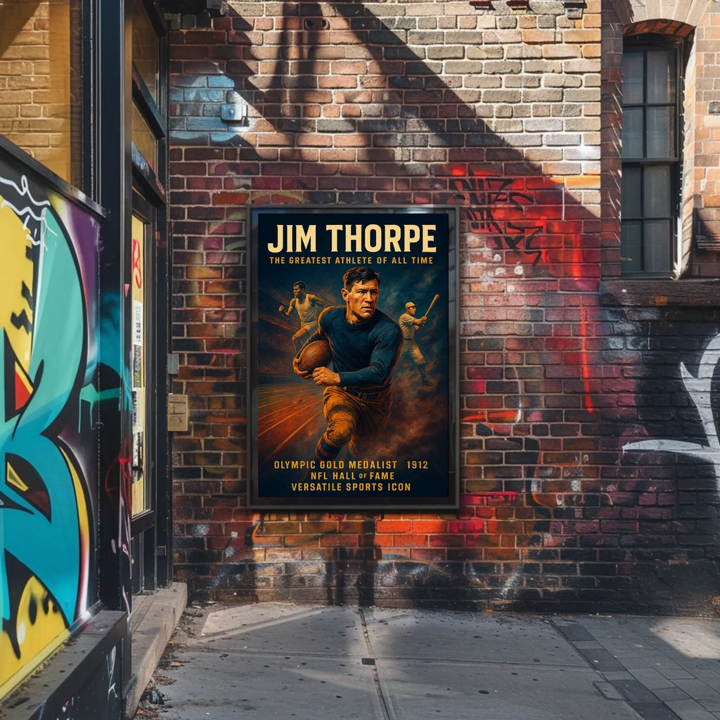 Celebrate the unparalleled legacy of Jim Thorpe with this Legendary Sports Icon Poster. This bold tribute honors his historic 1912 Olympic gold medal and his NFL Hall of Fame impact, capturing Thorpe’s extraordinary versatility and relentless drive. Perfect for sports enthusiasts, history lovers, and spaces that celebrate greatness, it adds timeless energy to any room.