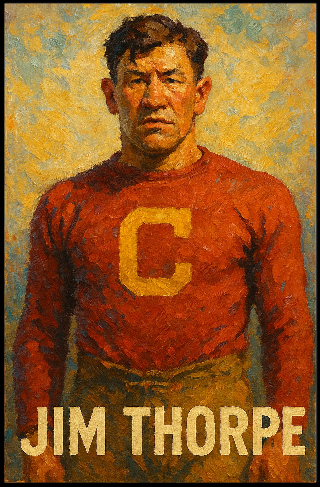 Perfect for living rooms, bedrooms, offices, or classrooms, this Jim Thorpe Portrait Poster blends sports history with modern aesthetics. Create a thoughtful gallery wall or add a striking focal point to any space with this versatile wall art.