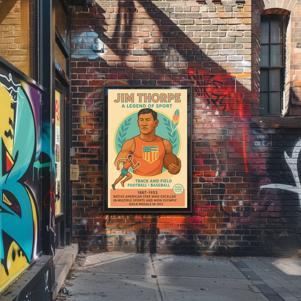 Celebrate the legacy of Jim Thorpe with this iconic poster honoring a trailblazing Native American athlete whose speed, versatility, and Olympic glory redefined sport. Designed to inspire pride and conversation, this piece turns any wall into a tribute to determination, courage, and historic achievement.