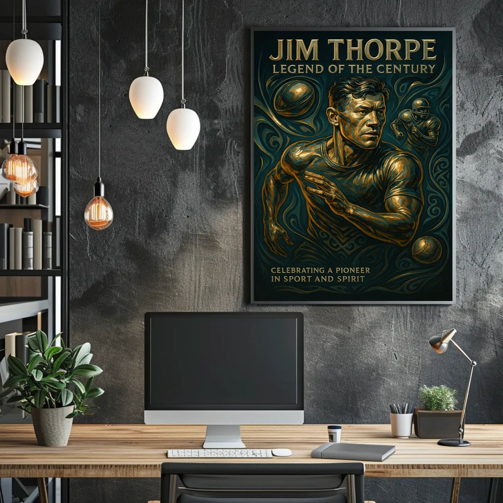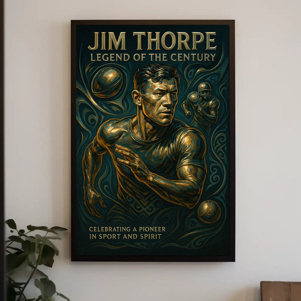 Iconic portrayal of an athletic icon — A striking image that honors Jim Thorpe's multi-sport genius, giving you a focal point that motivates training and study.