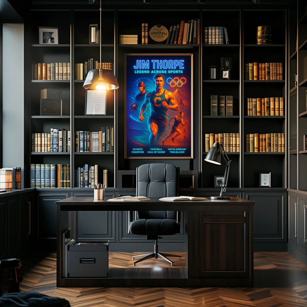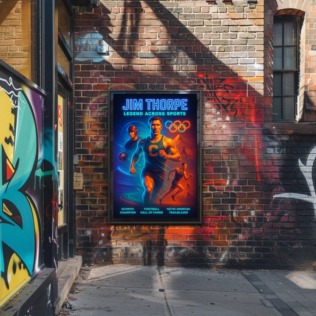 Celebrate the enduring legacy of Jim Thorpe with this striking poster that pairs athletic prowess with a powerful cultural story. Designed for sports lovers and history fans, it captures Thorpe’s trailblazing spirit and timeless impact in a single, inspiring image.