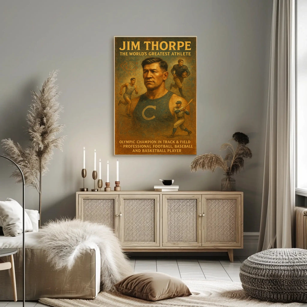 Printed with precision and made to inspire, this artwork is more than decoration—it’s a conversation piece that connects history, culture, and style. Bring Jim Thorpe, The Worlds Greatest Athlete into your home, classroom, or office today and let your walls tell a powerful story.