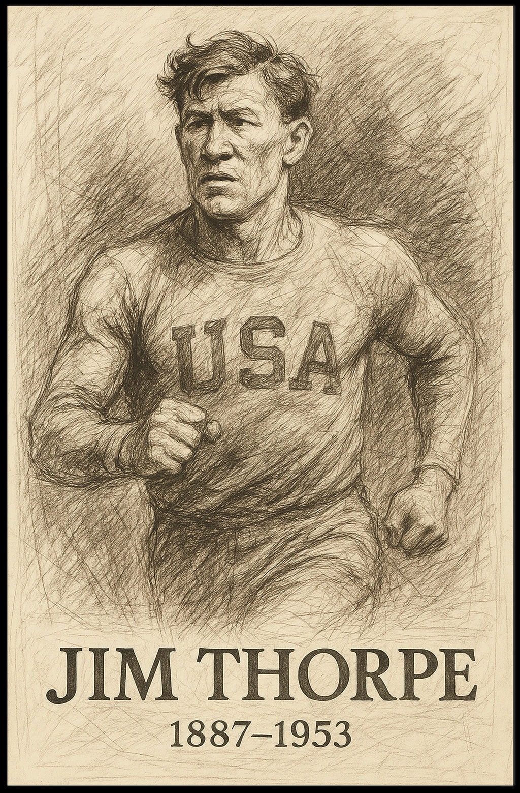 This Jim Thorpe tribute poster is a striking addition to any room, blending heritage with modern decor. Perfect for living spaces, offices, dorm rooms, or galleries, it pairs beautifully with frames and can be a thoughtful gift for art lovers, sports history fans, and travelers alike.