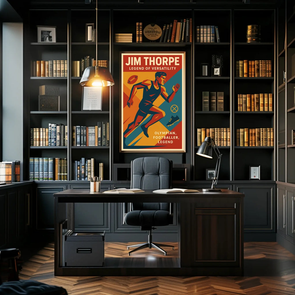 Celebrate the incredible legacy of Jim Thorpe, a true icon of versatility. This striking poster captures the essence of an Olympian, footballer, and all-around legend, showcasing his unparalleled athletic prowess and enduring influence in the world of sports. Perfect for history buffs.