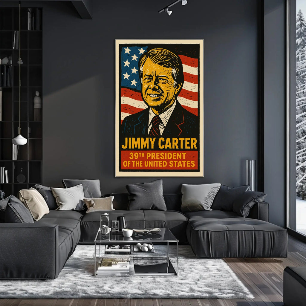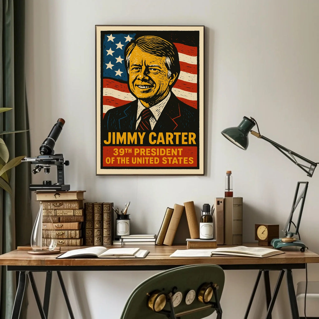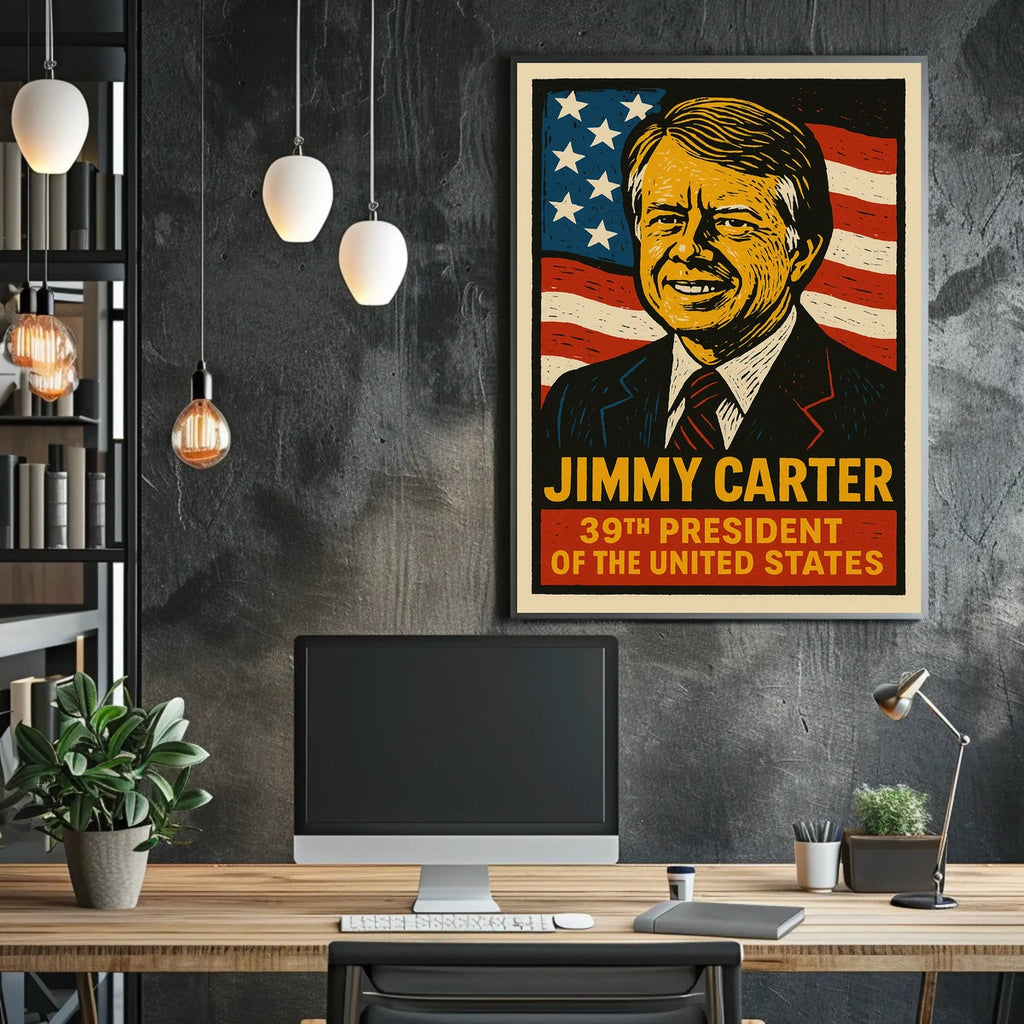 - Printed with precision and made to inspire, this artwork is more than decoration—it’s a conversation piece that connects history, culture, and style. Bring Jimmy Carter 39th President Poster into your home, classroom, or office today and let your walls tell a powerful story.