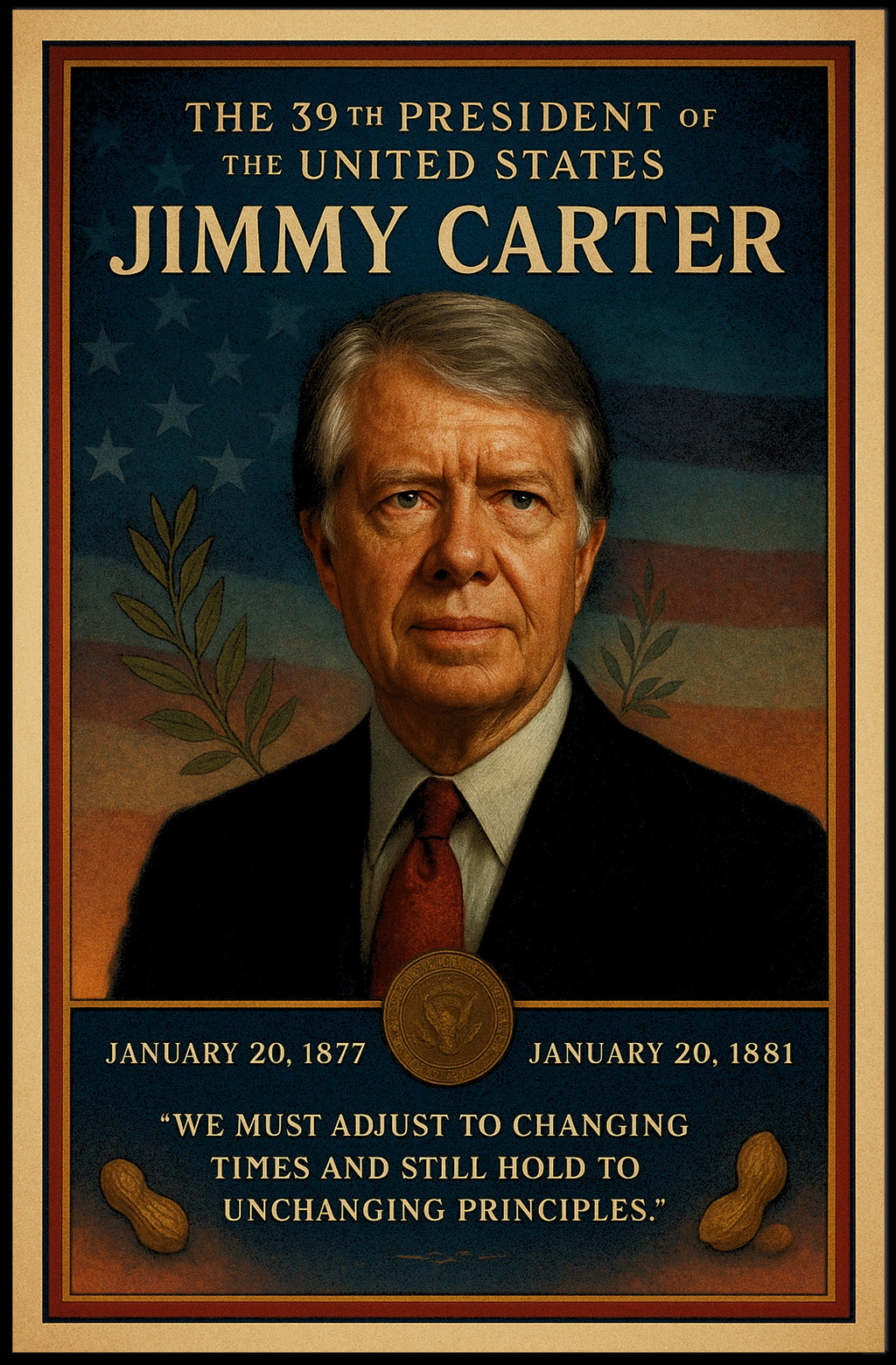 - Stunning Visuals: Features a beautifully illustrated portrait of Jimmy Carter, bringing history to life through art.
