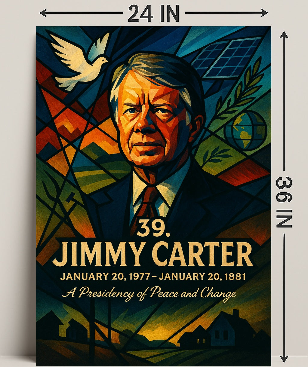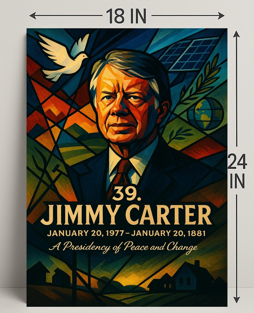Bring home the Jimmy Carter 39th President Poster and infuse your space with a blend of art and history. Don't miss out on this opportunity to own a piece of presidential legacy—order yours today!
