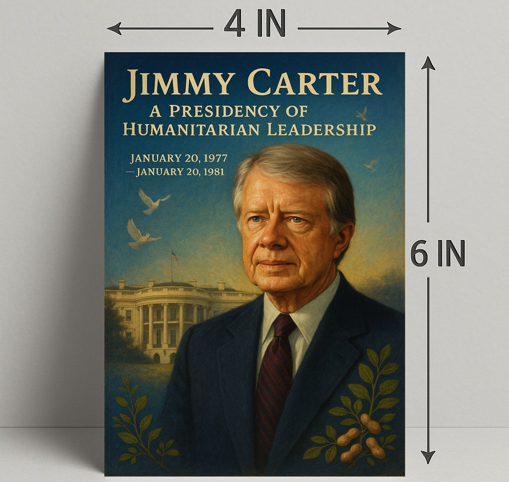 Inspirational Design: Features a captivating portrait of Jimmy Carter, symbolizing his dedication to humanitarian efforts and leadership.
