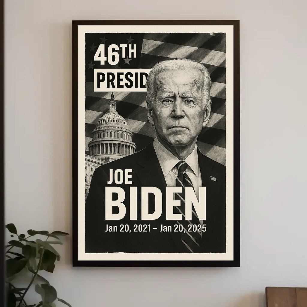 Bring Joe Biden 46th President of the United States Digital Montaje Poster into your home, classroom, or office today and let your walls tell a powerful story. Perfect for fans of American politics, history, and poster art, this piece adds a bold, meaningful touch to any space.