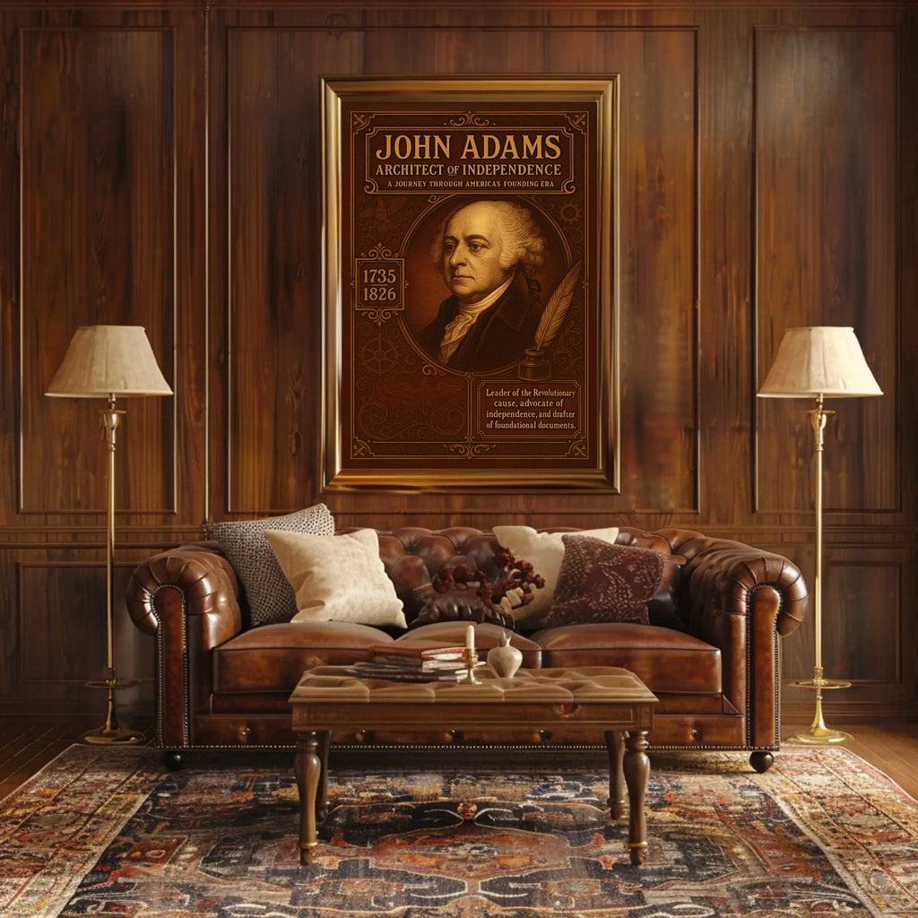 This poster celebrates John Adams as Architect of Independence with a clean, minimalist vibe that fits everyday spaces. It pairs subtle typography with scenic inspiration, so it feels timeless rather than decorative. A great addition to Home & Garden decor, it works well in living rooms, bedrooms, or home offices, adding a hint of history without overpowering your space.