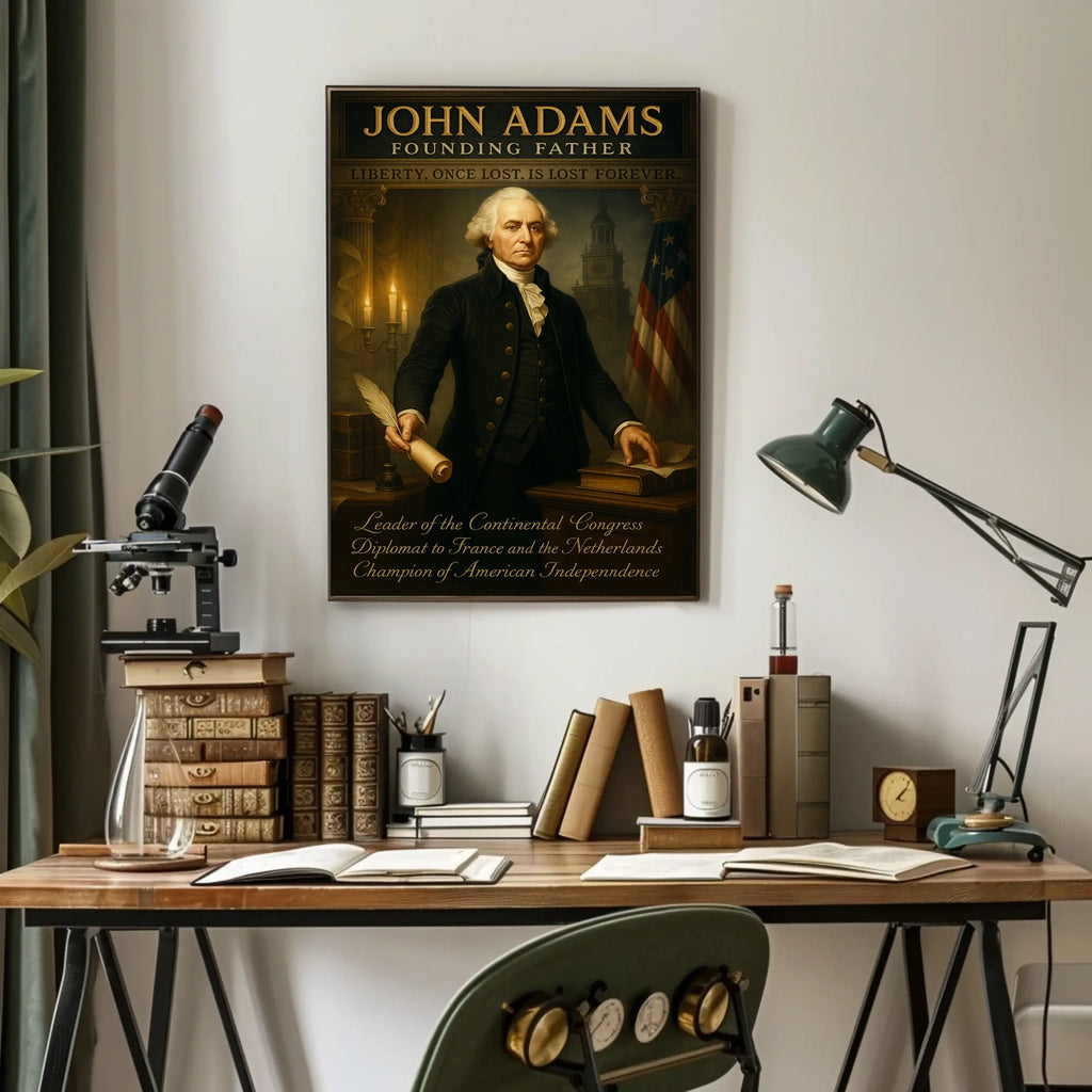 Bring a touch of history and artistry to your space with this John Adams poster. Its refined design, enduring quality, and universal appeal make it a smart addition to any wall art collection. Ready to own a piece of Americana? Add to cart now to upgrade your decor.