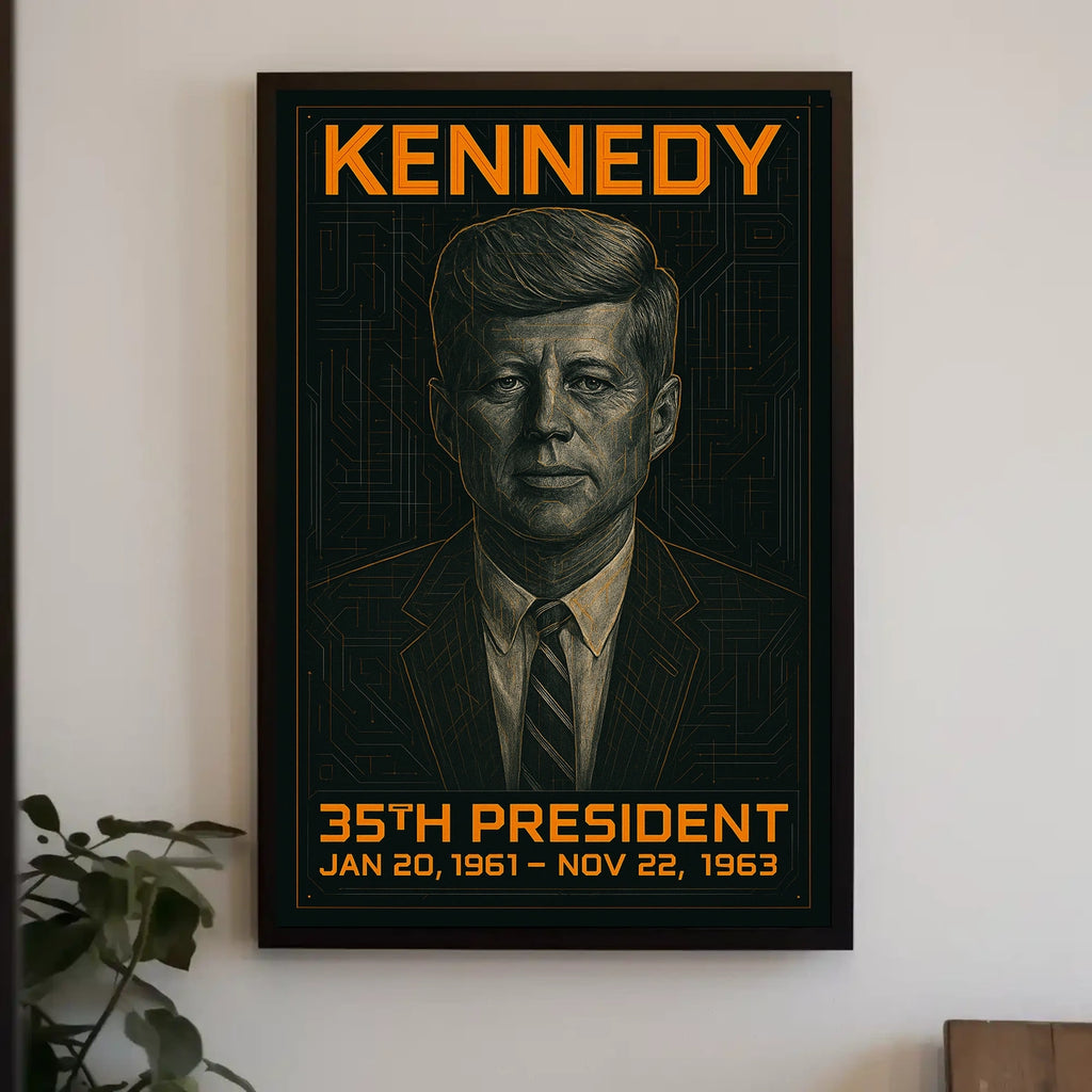 Celebrate the beauty of John F. Kennedy 35th President of the United States Techno Schematic Poster with this timeless wall art. Designed to capture Kennedy's unique appeal, this piece is perfect for collectors, enthusiasts, or anyone who wants to bring meaning and inspiration into their space.