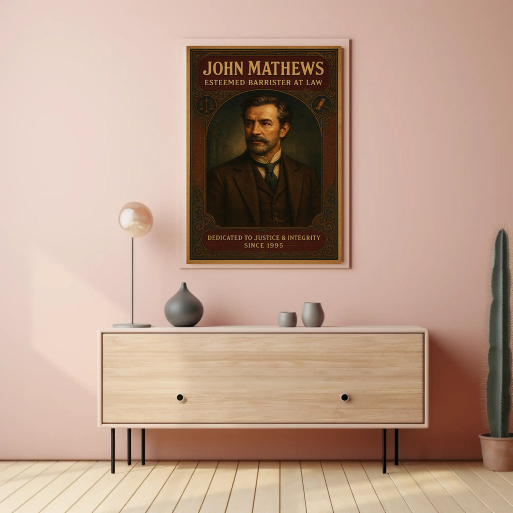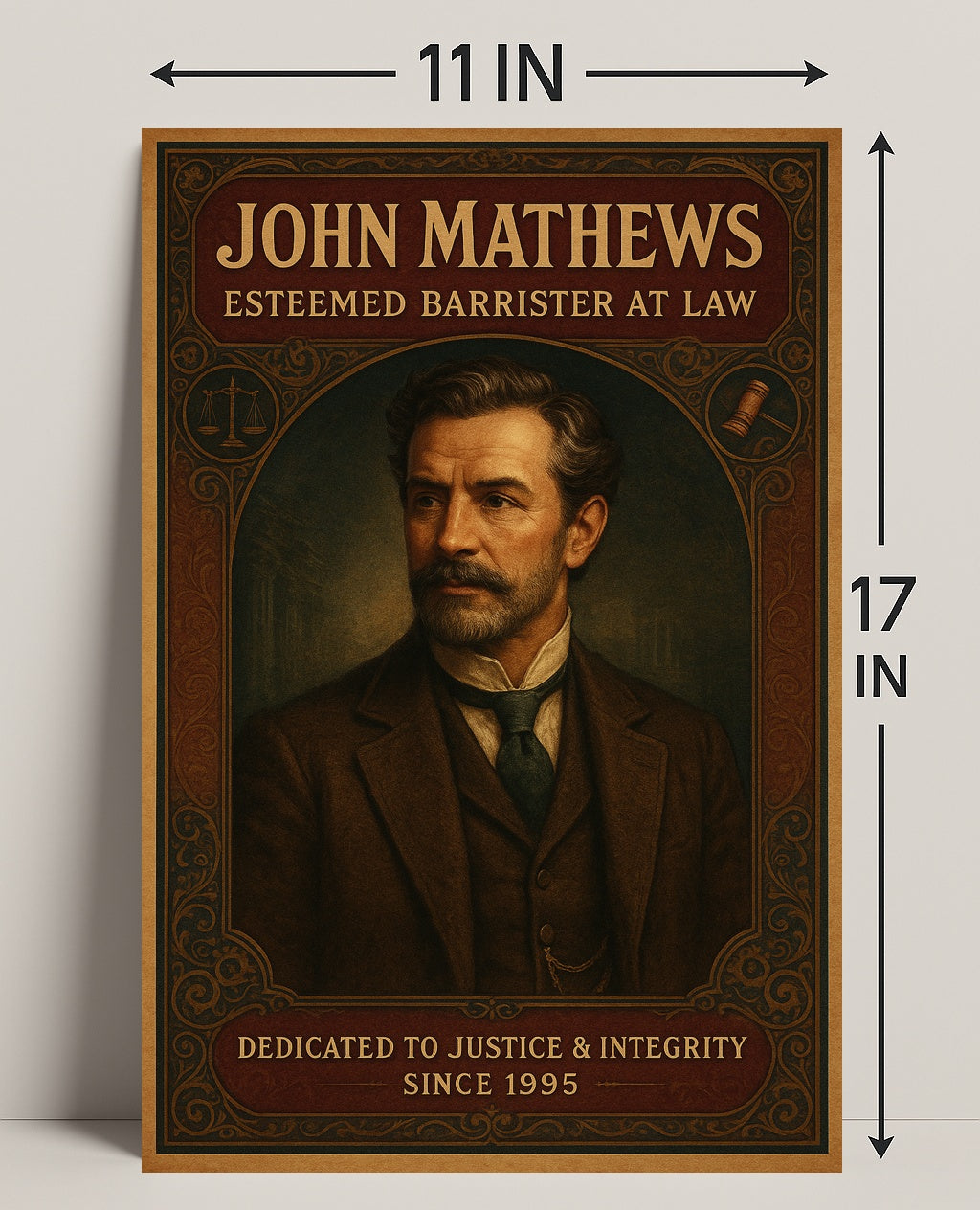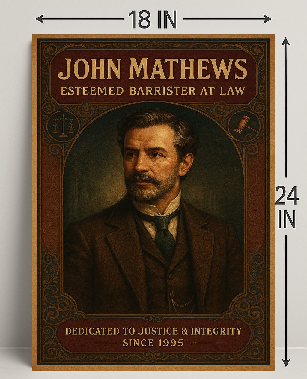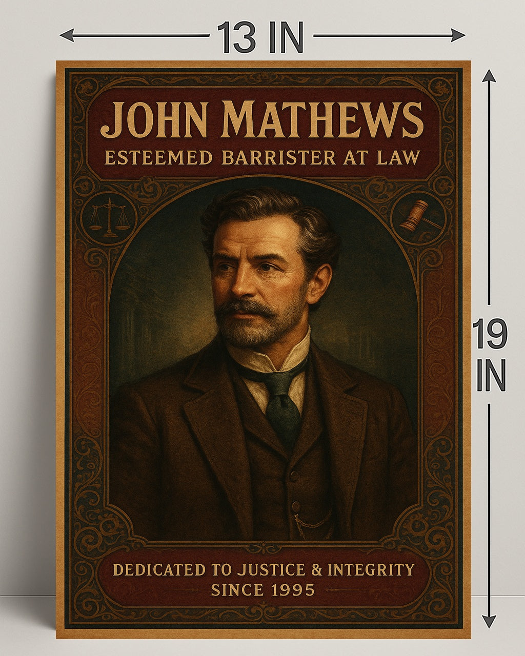 Transform your walls with the John Mathews Esteemed Barrister at Law Poster from PosterGoat. Its captivating visuals and meaningful message make it more than just decor; it’s a statement piece. Don’t miss out on the chance to enhance your space—order yours today!