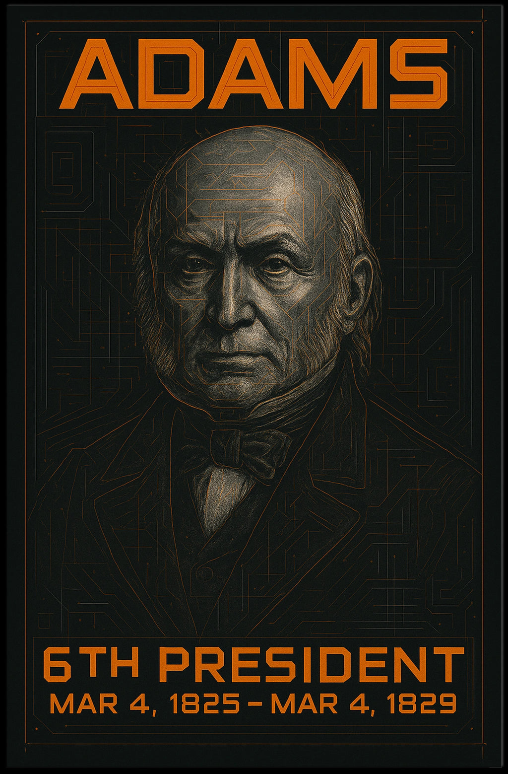 Celebrate the beauty of John Quincy Adams 6th President of the United States Techno Schematic Poster with this timeless wall art. Designed to capture its unique appeal, this piece is perfect for collectors, enthusiasts, or anyone who wants to bring meaning and inspiration into their space.