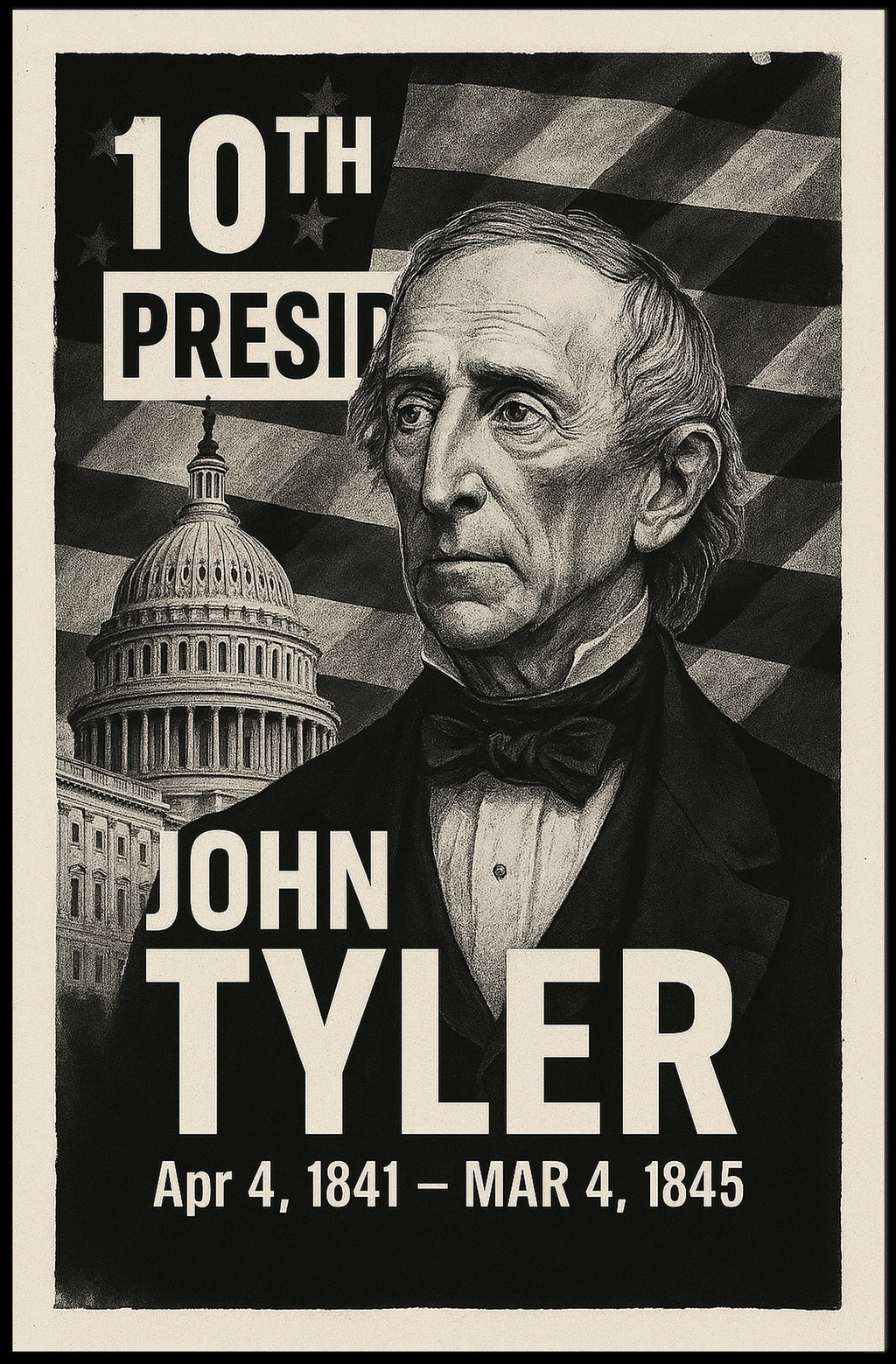 Celebrate the beauty of John Tyler, the 10th President of the United States, with this timeless digital montage poster. Designed to capture his unique appeal, this piece is perfect for collectors, enthusiasts, or anyone who wants to bring meaning and inspiration into their space.