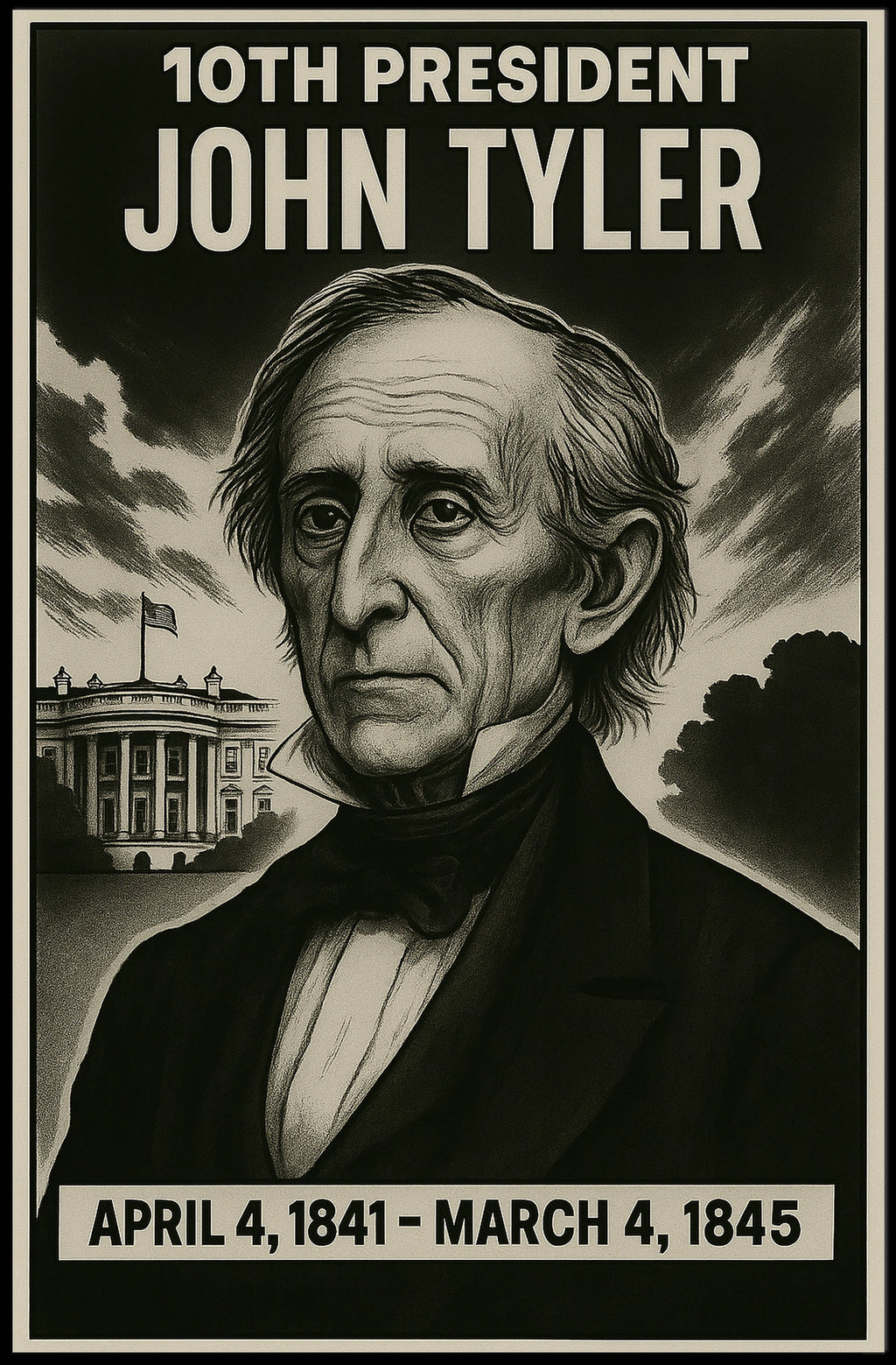 - Detailed design highlighting the essence of John Tyler, the 10th President