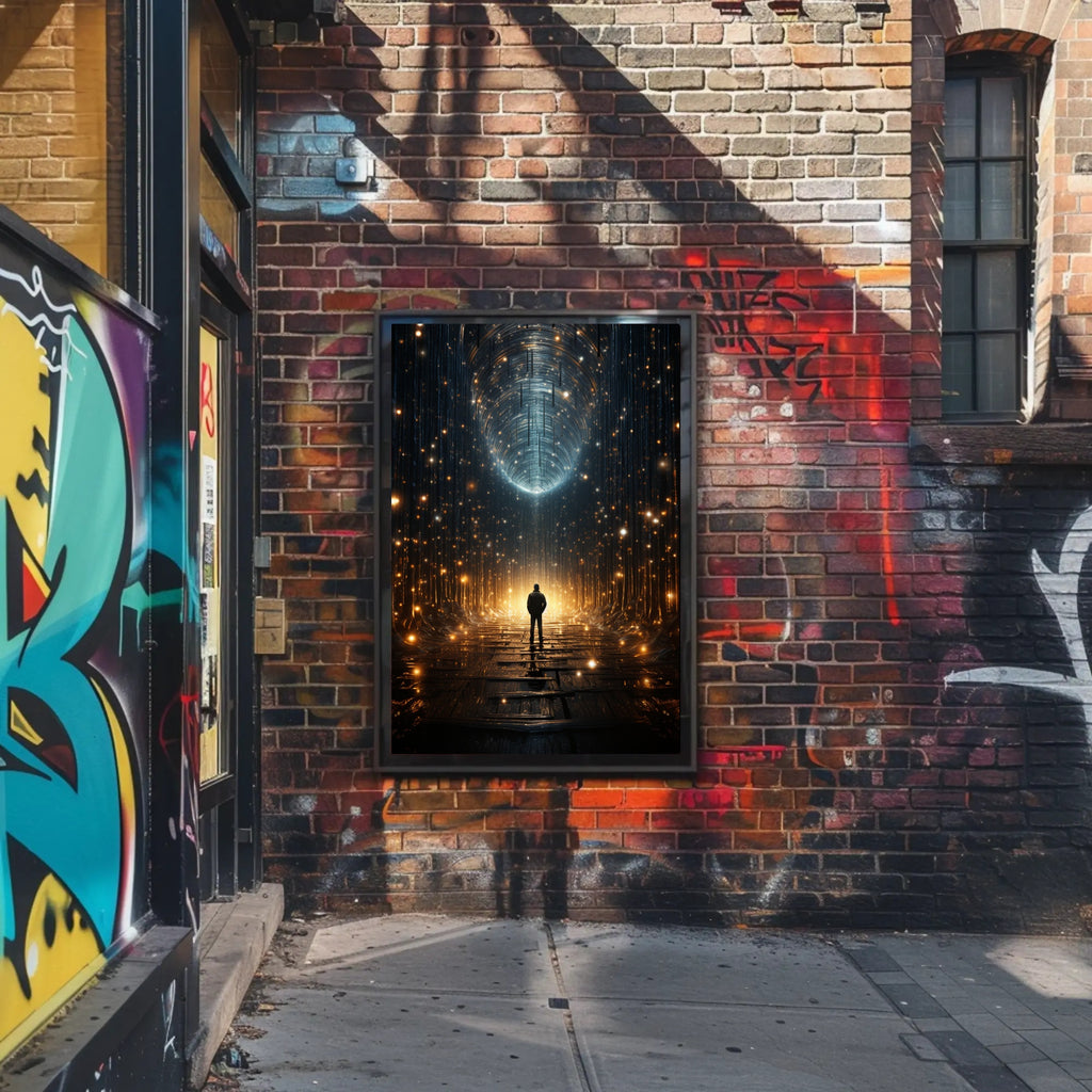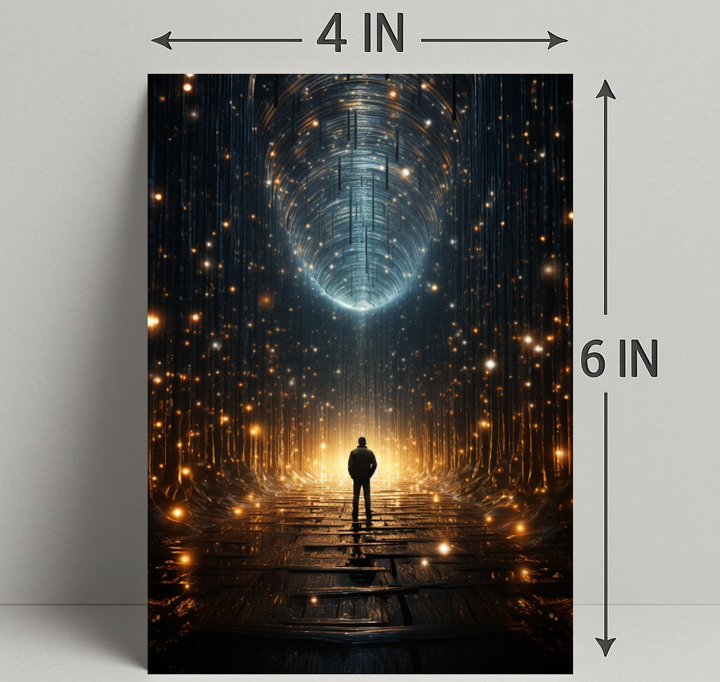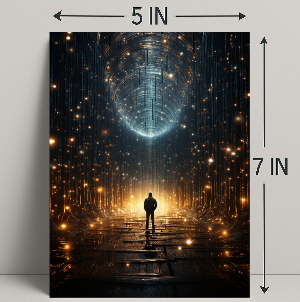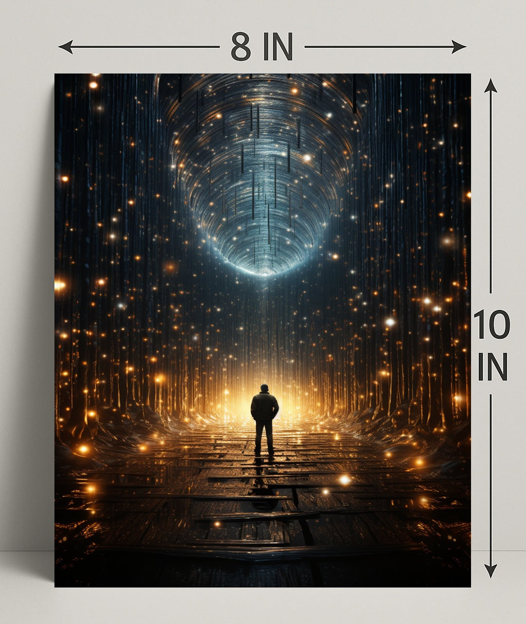 Immerse your walls in wonder with the Journey Into The Cosmos Poster from PosterGoat — a cinematic, minimalist artwork that captures a lone figure standing beneath a vaulted tunnel of stars and shimmering light. Perfect for modern living rooms, home offices, or creative studios, this print blends scenic travel-inspired imagery with cosmic, artful design to evoke curiosity and calm in equal measure.