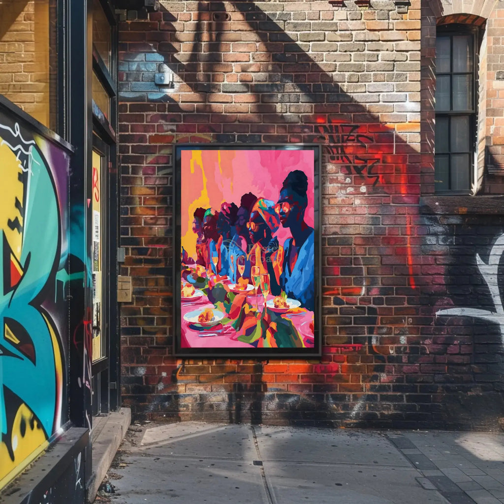 Perfect for: Anyone seeking vibrant decor that celebrates community, culture and contemporary artistic flair. The composition’s lively palette pairs beautifully with neutral interiors to add instant warmth and personality.