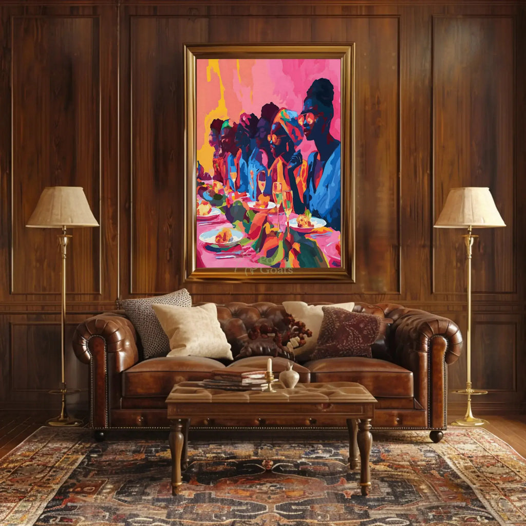 Make a bold design statement—bring the Joyful Celebration Dining Scene Abstract Artistic Poster into your space today and let PosterGoat deliver an eye-catching centerpiece that sparks conversation and joy.