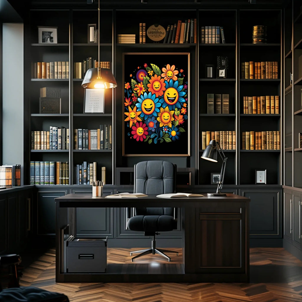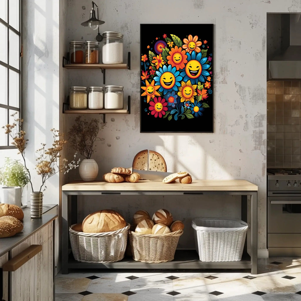 Elevate any room with this whimsical floral poster—perfect for living rooms, bedrooms, classrooms, and workspaces. Add a splash of positive energy to your walls and let the cheerful faces brighten every day.