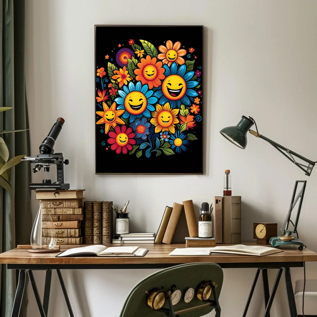 - Printed with precision and made to inspire, this artwork is more than decoration—it’s a conversation piece that connects happiness, color, and style. Bring Joyful Floral Faces into your home, classroom, or office today and let your walls tell a powerful story