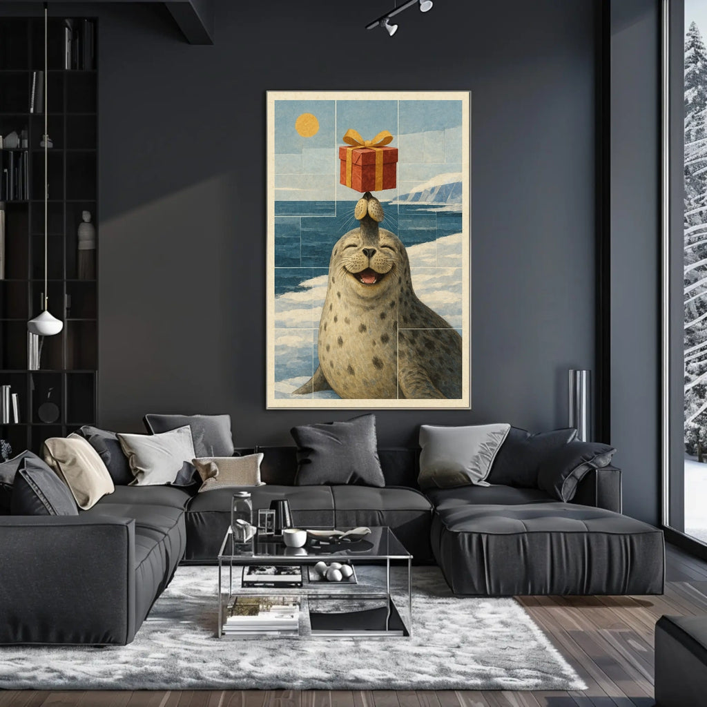 - Printed with precision and made to inspire, this artwork is more than decoration — it’s a conversation piece that connects nature, travel, and style. Bring Joyful Seal With A Gift into your home, classroom, or office today and let your walls tell a powerful story.