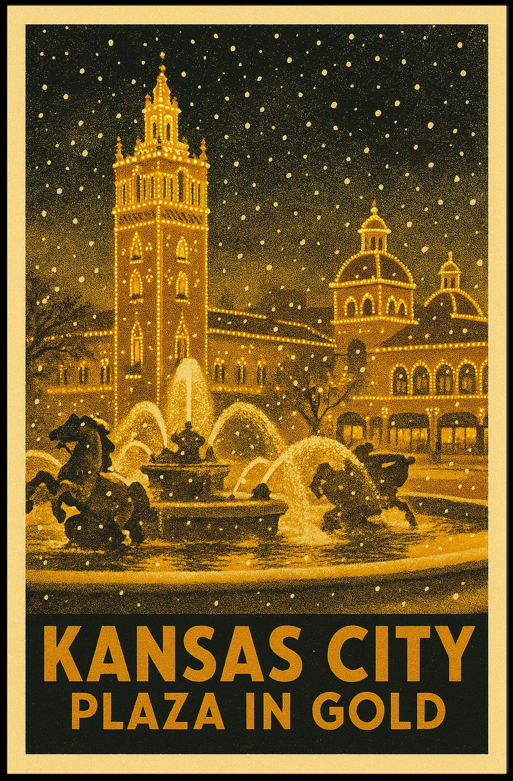 Printed with precision and made to inspire, this artwork is more than decoration—it’s a conversation piece that connects art, travel, and city culture. Bring Kansas City Plaza in Gold into your home, classroom, or office today and let your walls tell a powerful story.