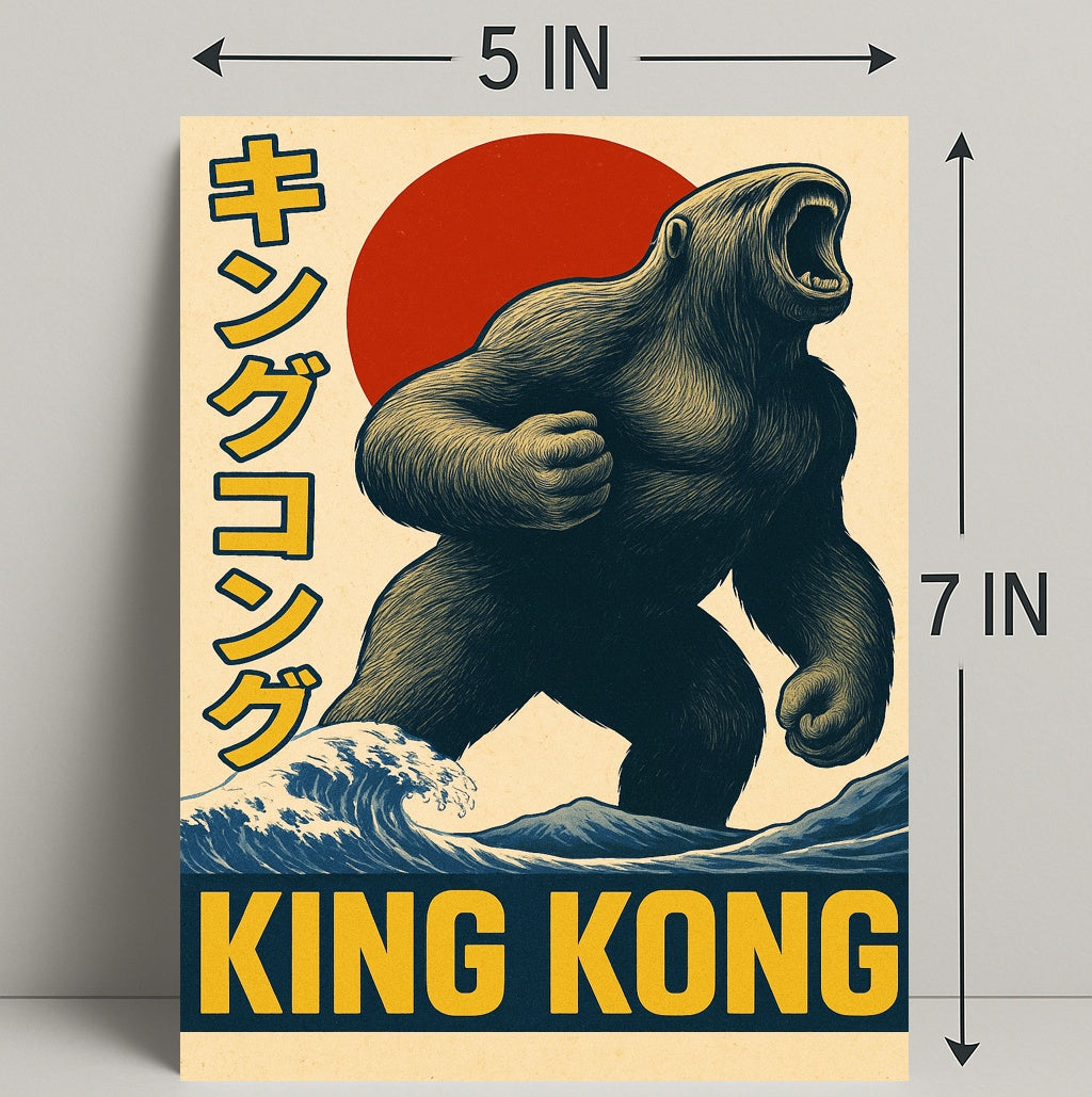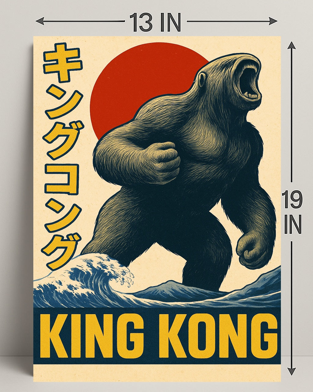 Bring cinematic power and retro pop‑art style to your walls with the King Kong Poster from PosterGoat. This bold, high-impact poster captures the legendary titan mid-roar against a crimson sun and crashing waves — a statement piece that energizes living rooms, home theaters, dorms, and office walls.